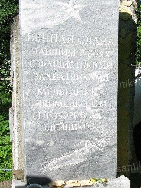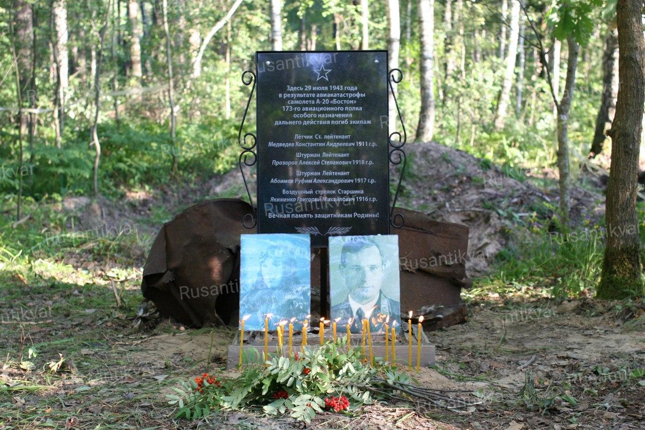 «Здесь 29 июля 1943 года в результате авиакатастрофы самолета А-20 «Бостон» 173-го авиационного полка особого назначения дальнего действия погиб экипаж