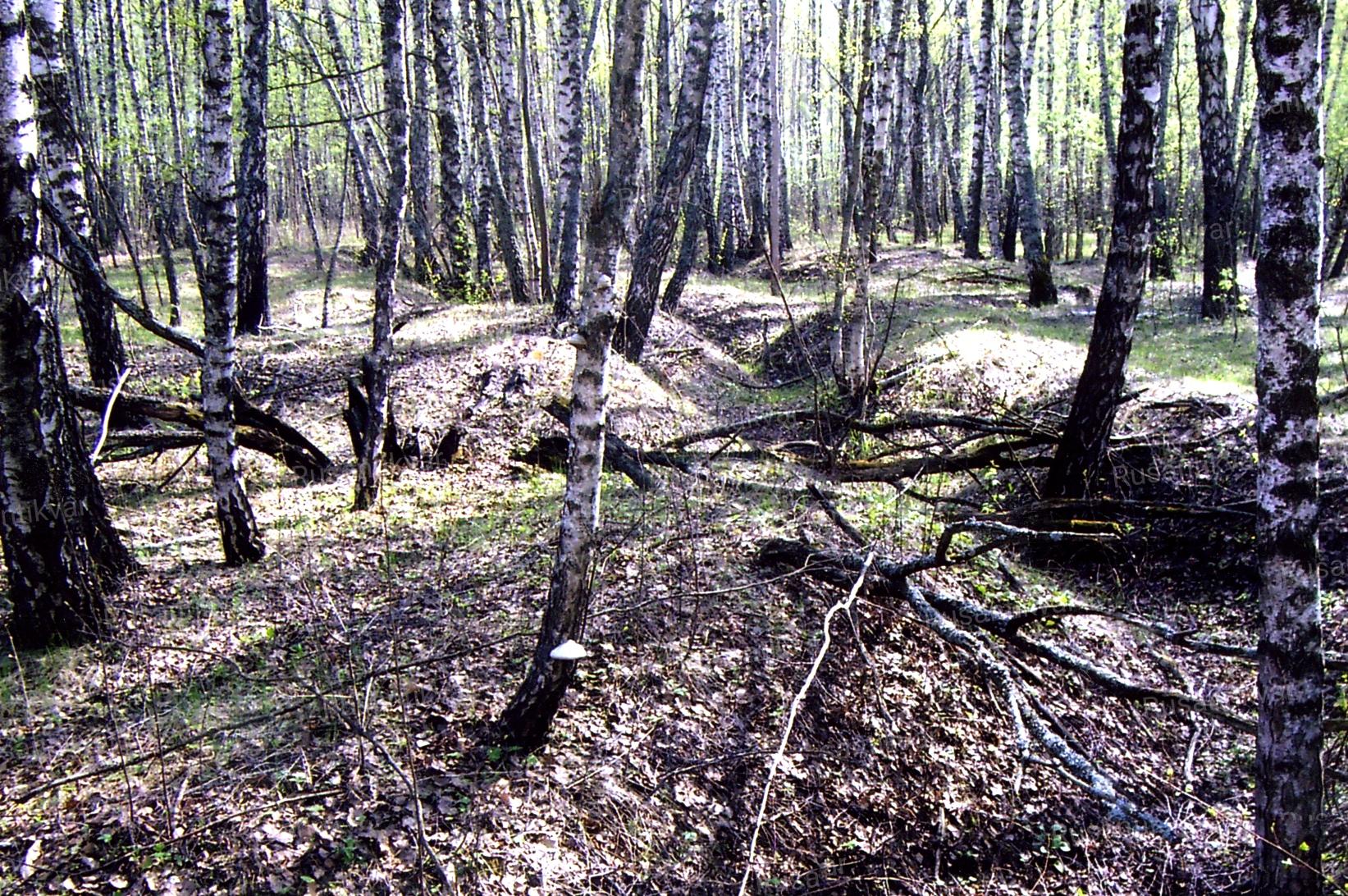 Стрелковые позиции, поросшие молодым лесом.