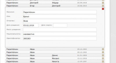 Действуя аналогичным образом, идем по списку дальше, отбирая, если необходимо, своих земляков по данным в правой колонке. Если она пуста, не пожалейте нескольких секунд, кликните на такого воина – нередко в самом документе место рождения указано, просто не вынесено в критерии поиска. И так, лагерь за лагерем…