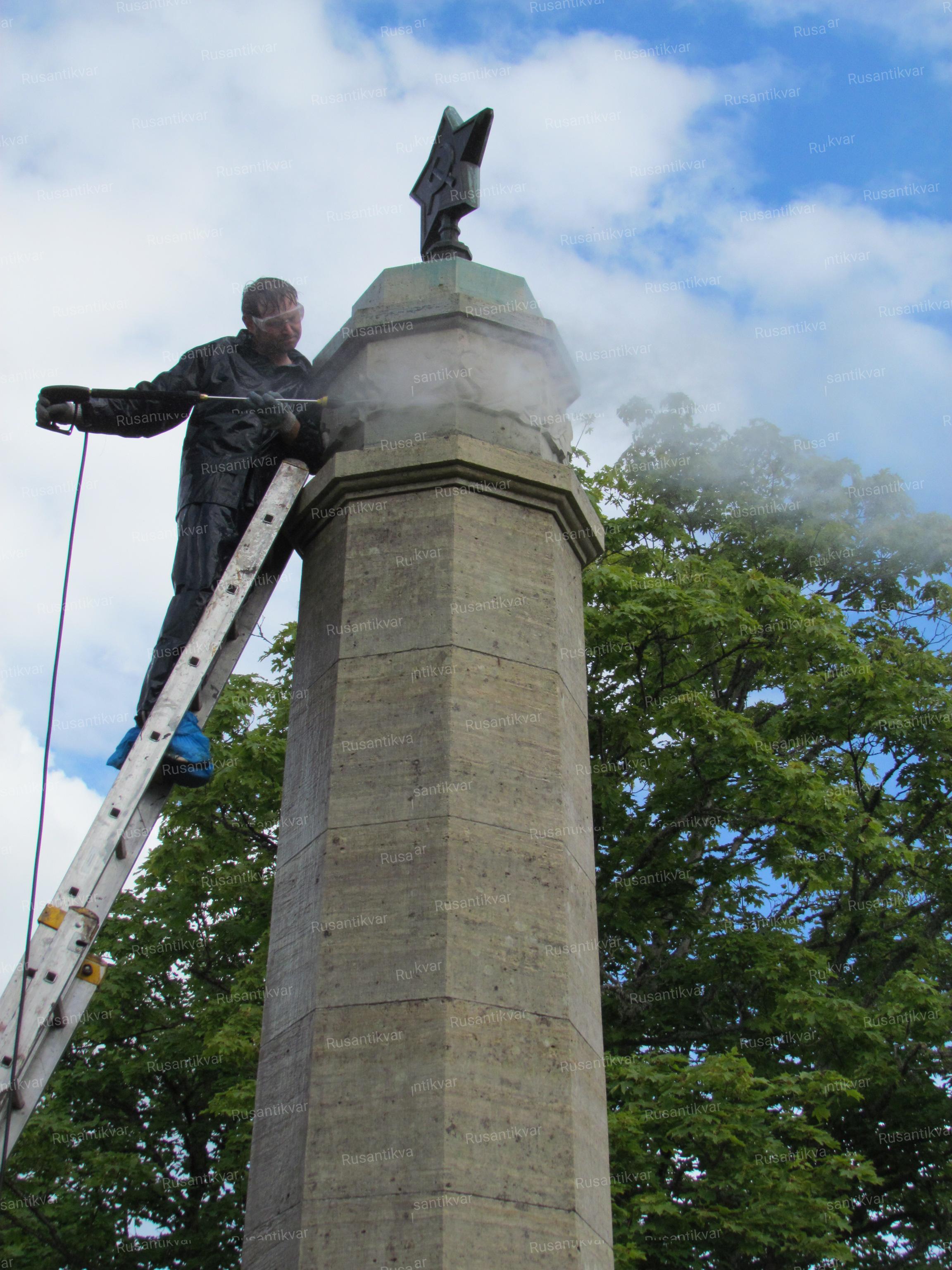 11. Обелиск отмывали мощной струей воды.