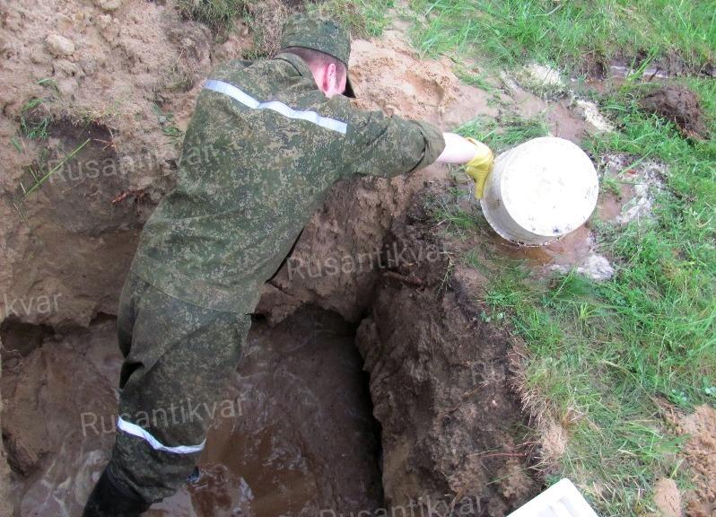 Место проведения работ сразу огородили. Более того, как оказалось, забор воинской части стоял прямо на месте захоронения, так что его пришлось отнести. Поиск шел традиционно: сначала пробные шурфы, затем – углубленные раскопки.