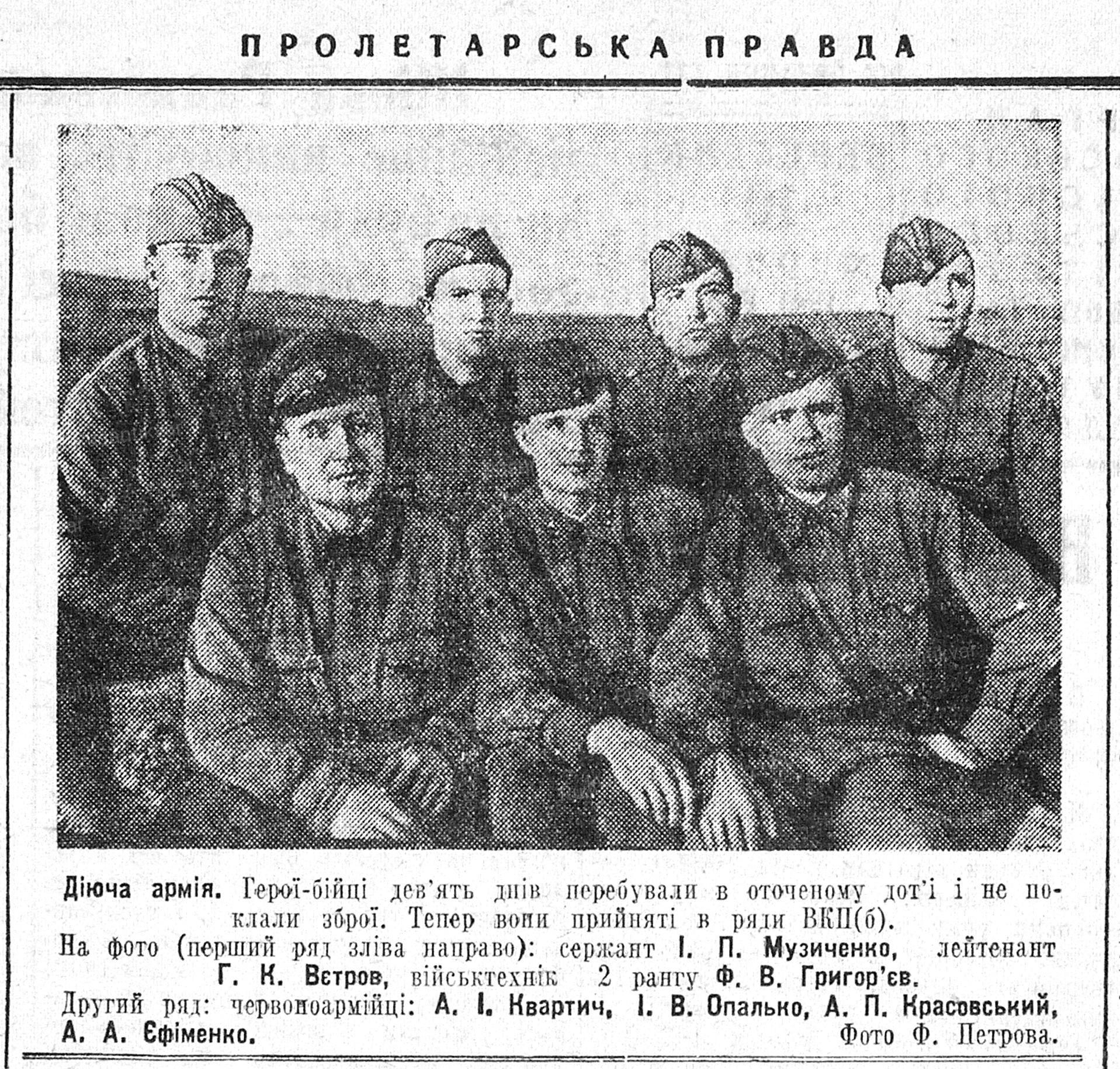 7. Фото защитников ДОТа в газете «Пролетарская правда» от 10 сентября 1941 года.