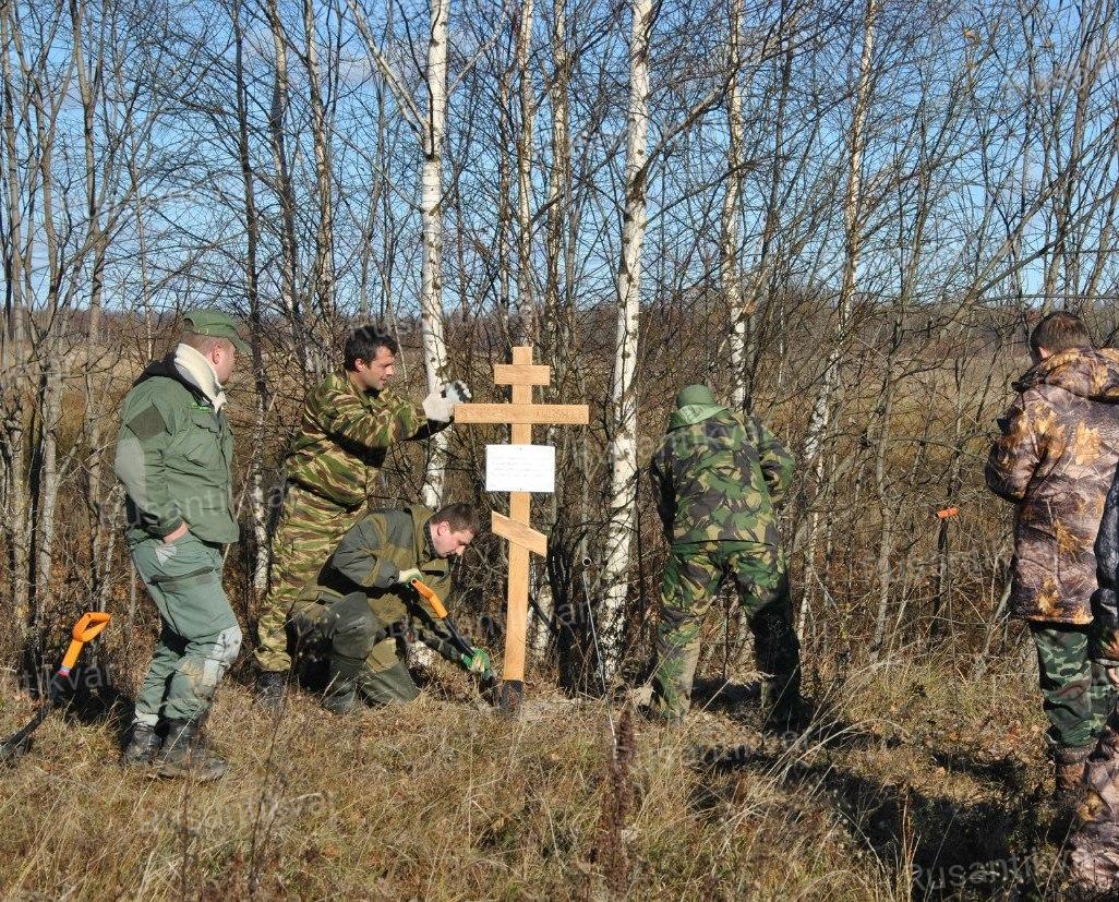 Вскоре после «Вахты» мы приехали всего на один день, чтобы установить поклонный крест в этой «долине смерти». Но нам было суждено задержаться ещё на день. Наш новичок Максим Татьянок, добрый и отзывчивый парень из Белоруссии, неподалёку от установленного креста нащупал воронку с пятью бойцами. У двоих оказались самодельные медальоны. Вернувшись в Москву, мы быстро установили, что оба красноармейца служили в 431-м стрелковом полку 52-й стрелковой дивизии. Полосухин Андрей Иванович, пропавший без вести, и Михайлин Николай Сергеевич, который числился якобы похороненным в 60 км от места обнаружения, оказались нашими земляками из Москвы. И тут не обошлось без совпадений. В процессе поиска родных выяснилось, что до войны Полосухин жил недалеко от меня на Проспекте Мира, а Михайлин – в Кунцево, через квартал от моей жены Дарьи, которая и нашла его медальон. Мы старались от души, и уже через две недели разыскали родственников обоих бойцов.