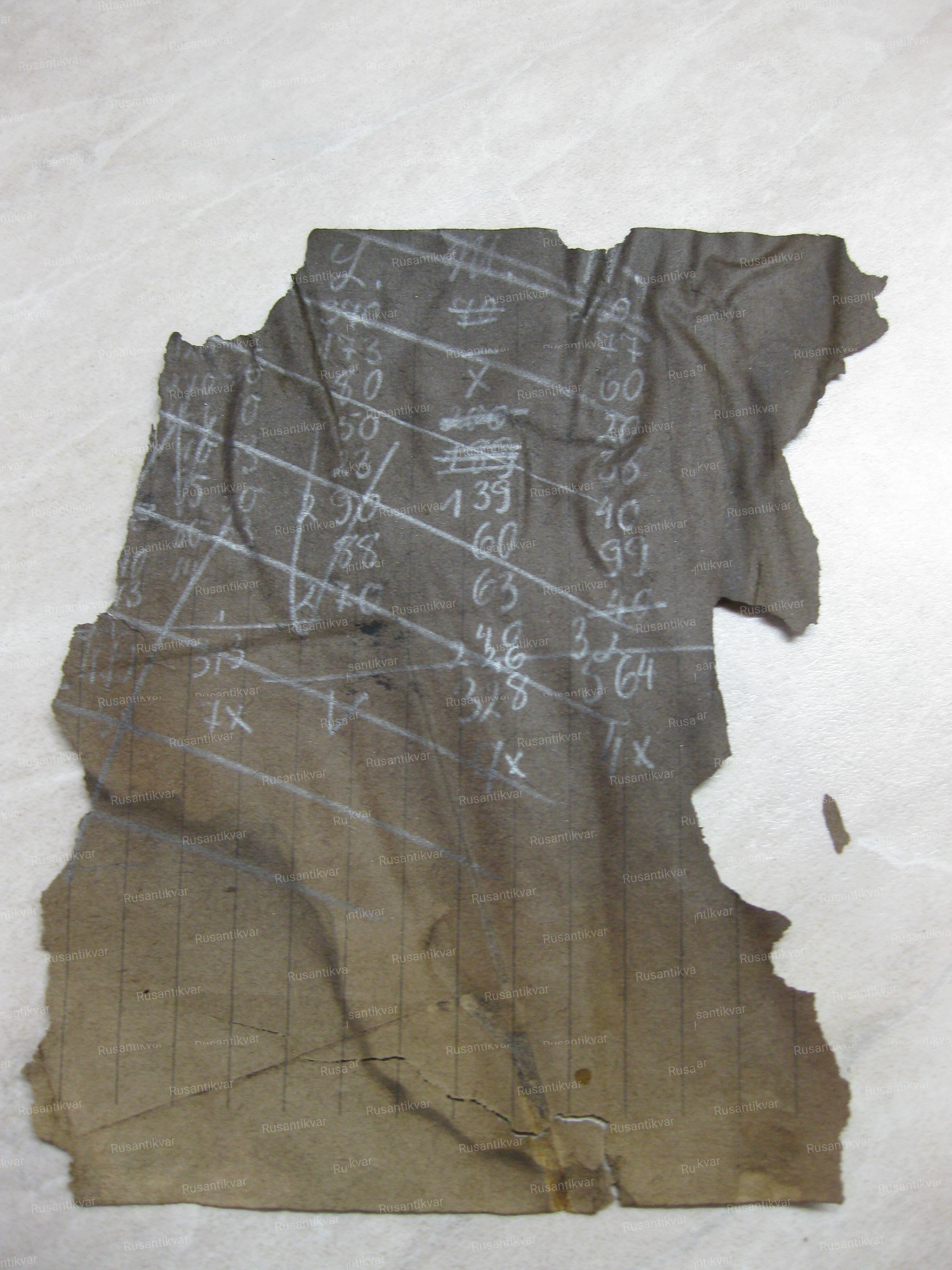 Тетрадные листы мы определили как запись очков в столбик при игре в карты. Вверху листа стояли четыре буквы с точками (видимо инициалы), а внизу подведена черта и указано общее количество очков. Коротали фрицы вечера затишья за игрой в картишки. А в советском блиндаже мы когда-то находили домино…