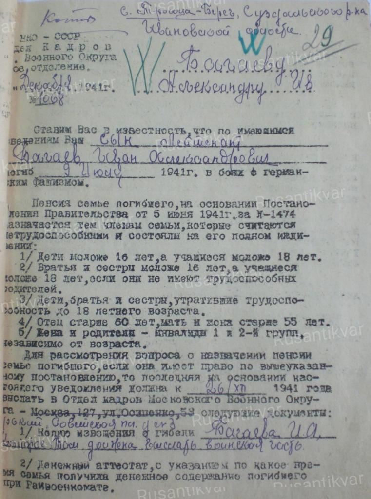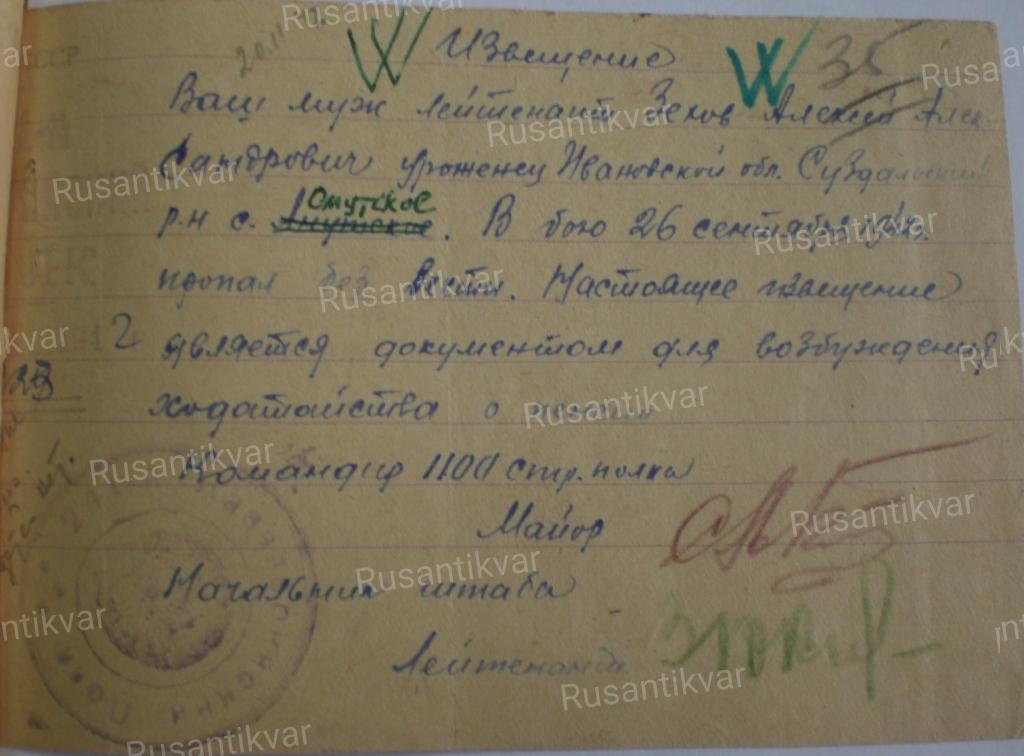 Несмотря на указания приказа НКО 1941 г. № 138 о высылке извещений семьям погибших лиц начальствующего состава войсковыми частями и учреждениями действующей армии немедленно, по установлению факта смерти военнослужащего, эти извещения высылаются с большим опозданием: