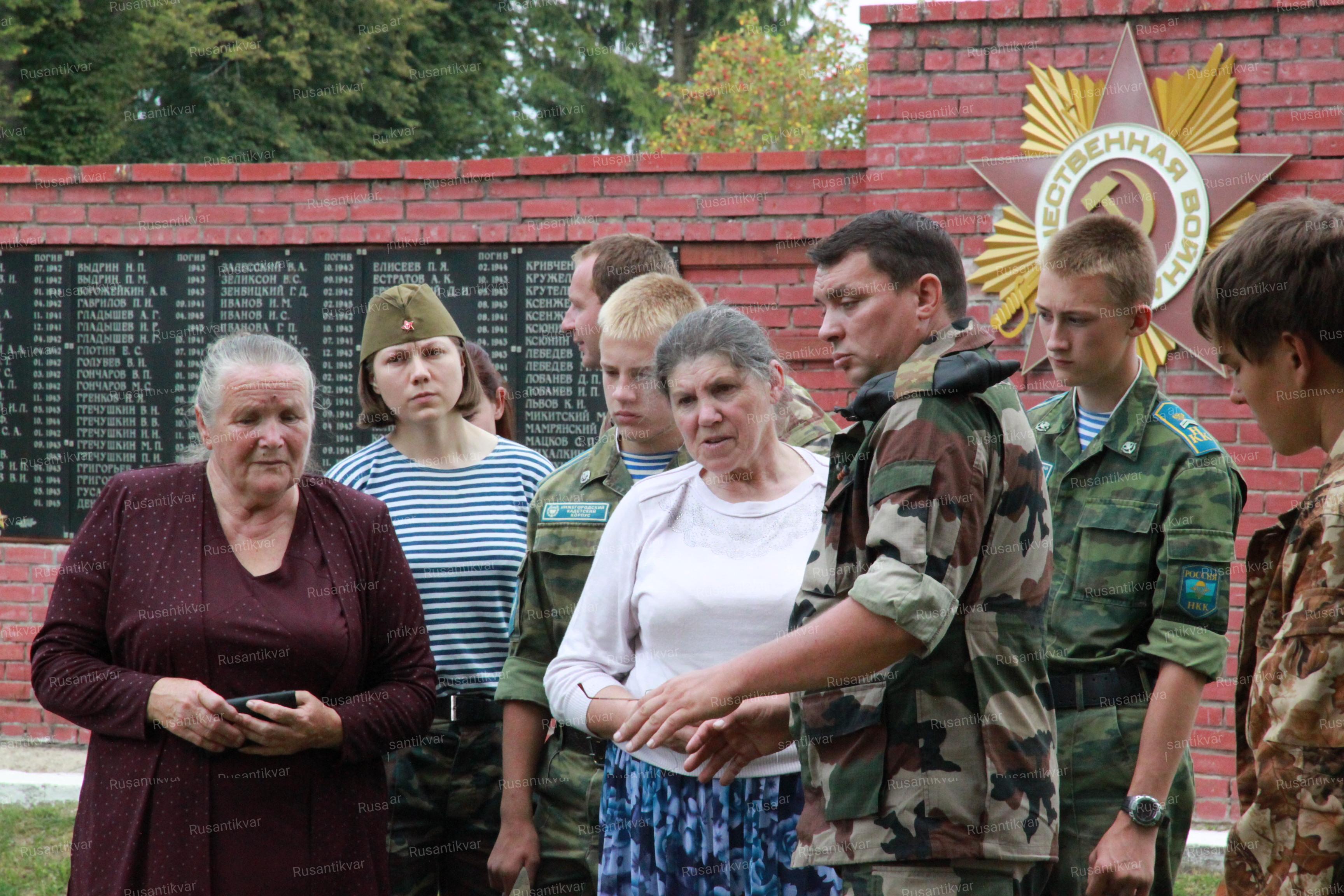 В эту же экспедицию к нам приезжали две племянницы бойца Егора Пустовойта. Мы его подняли давным-давно, в 1999 году. Но из-за огромного количества разночтений и переименований мы никак не могли найти родственников. Он был уроженцем села Зарiчня Ахтырского района Сумской области Украины. Оказалось, что это село с 60-х годов называется уже Украинка, а не Зарiчня, и поэтому нам приходили ответы, что села Зарiчня в Сумской области просто нет. Но через телепрограмму «Жди меня» удалось выйти на родственников…».
