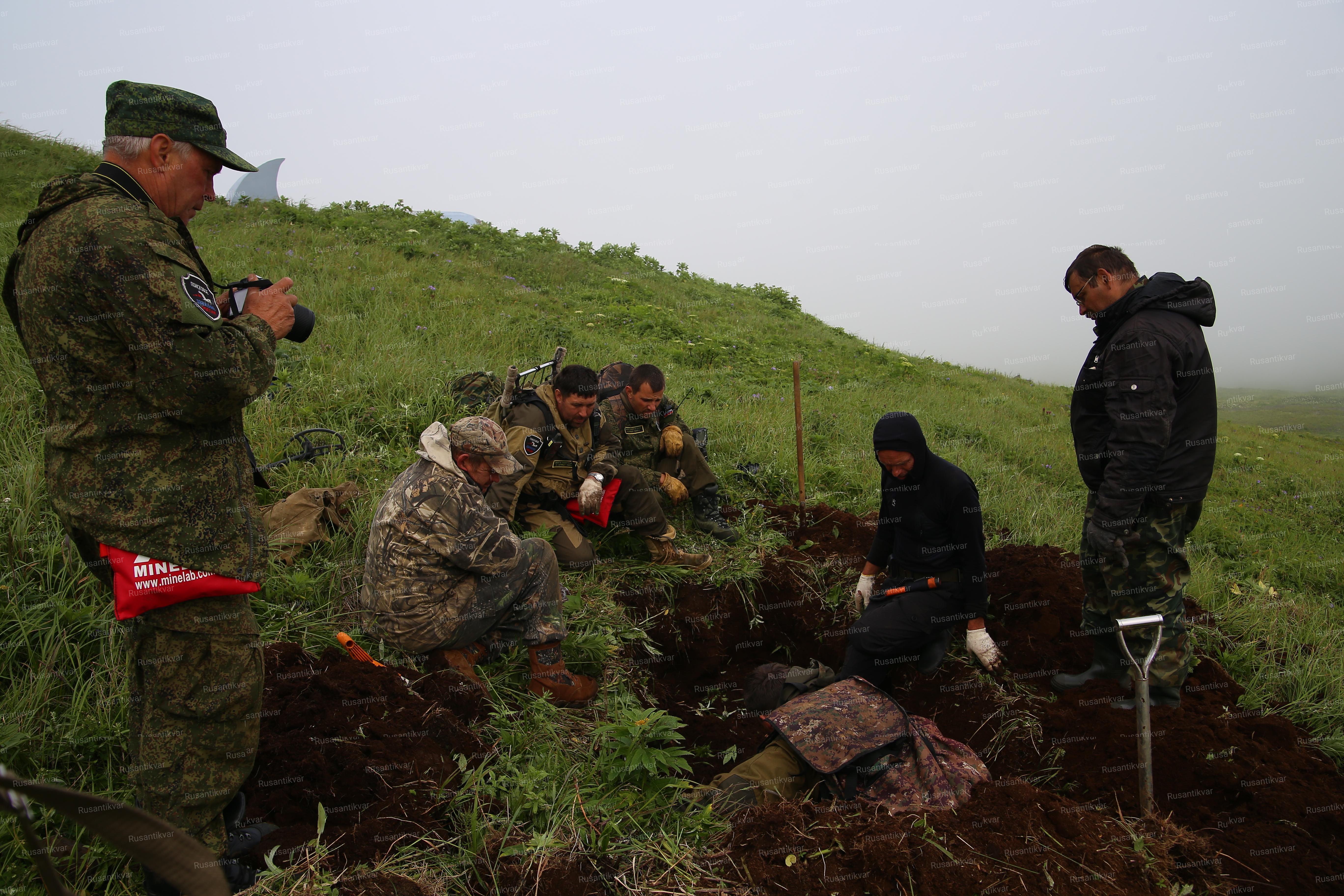 Работы по эксгумации останков закончили к 15:00. Найденные останки японцев запаковали, по близлежащей территории раскопа еще раз прошлись с металлодетекторами и закопали раскоп.