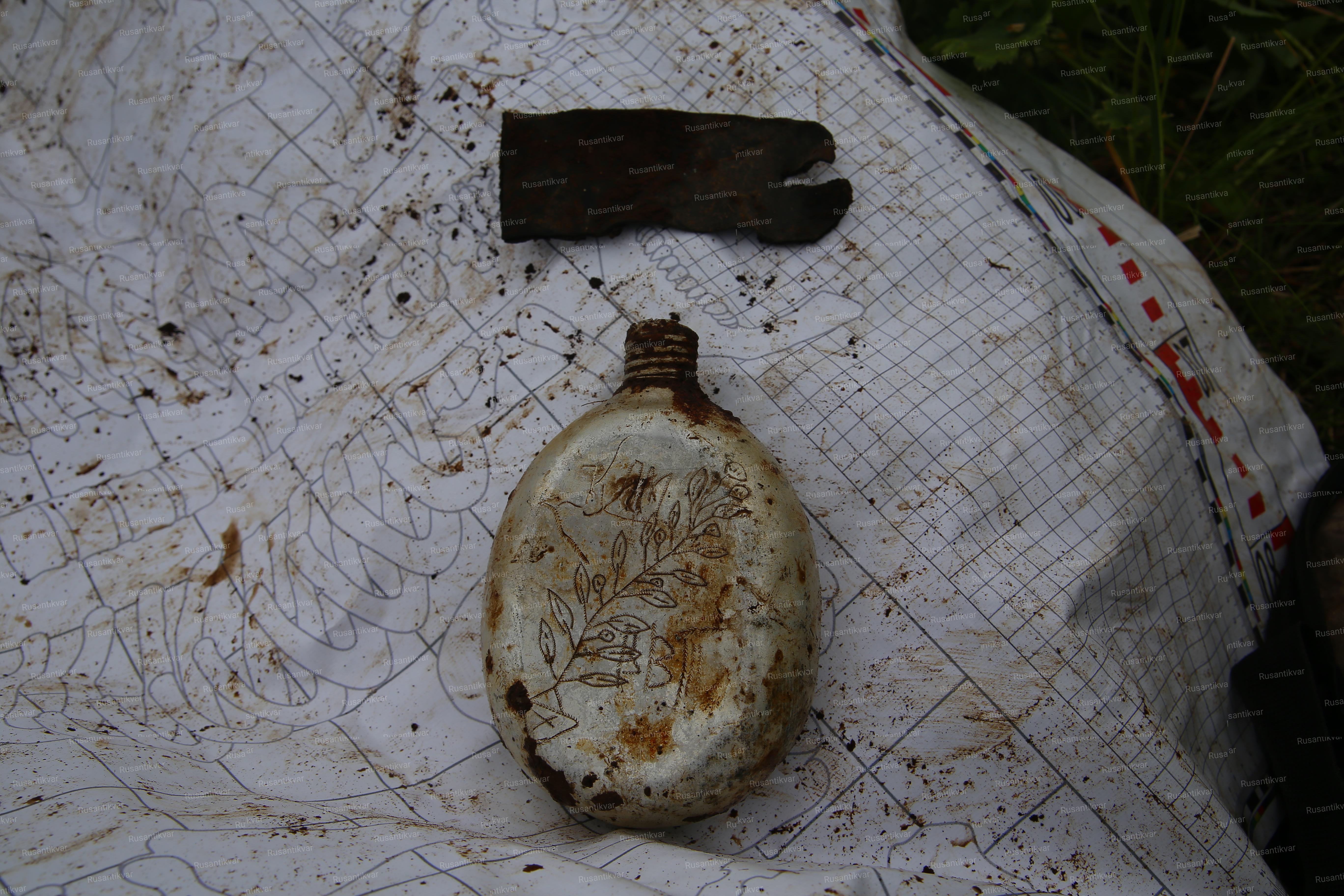 Также при останках воина найдена фляжка с изображением цветка, надписью: «КАМ» и инициалов ВВТ . Надпись: «КАМ» может означать слово «Камчатка» или его производные формы. На обратной стороне фляжки было выгравировано изображение пятиконечной звезды. После эксгумации останков была зачищена прилегающая территория. В районе поиска были обнаружены несколько советских сапёрных лопат, а также отстрел японского и советского стрелкового оружия.