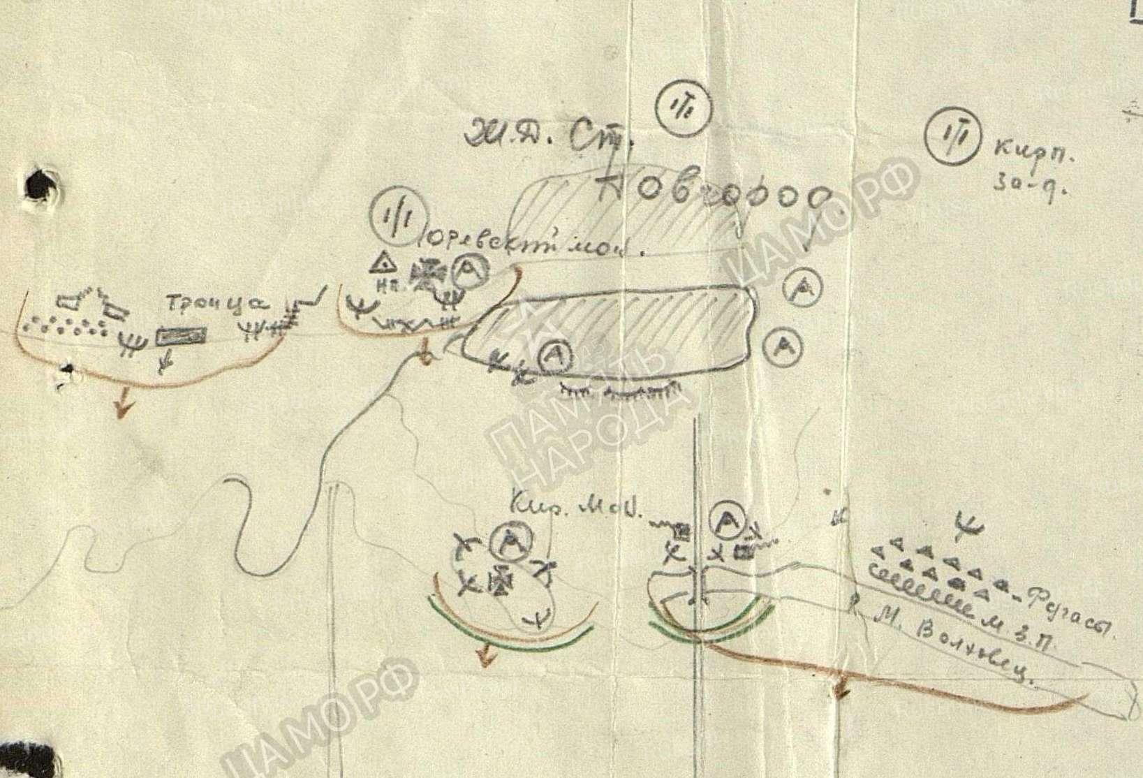 «… 1 сб занимает оборону: (иск) Ожигово – Сиверсов канал.