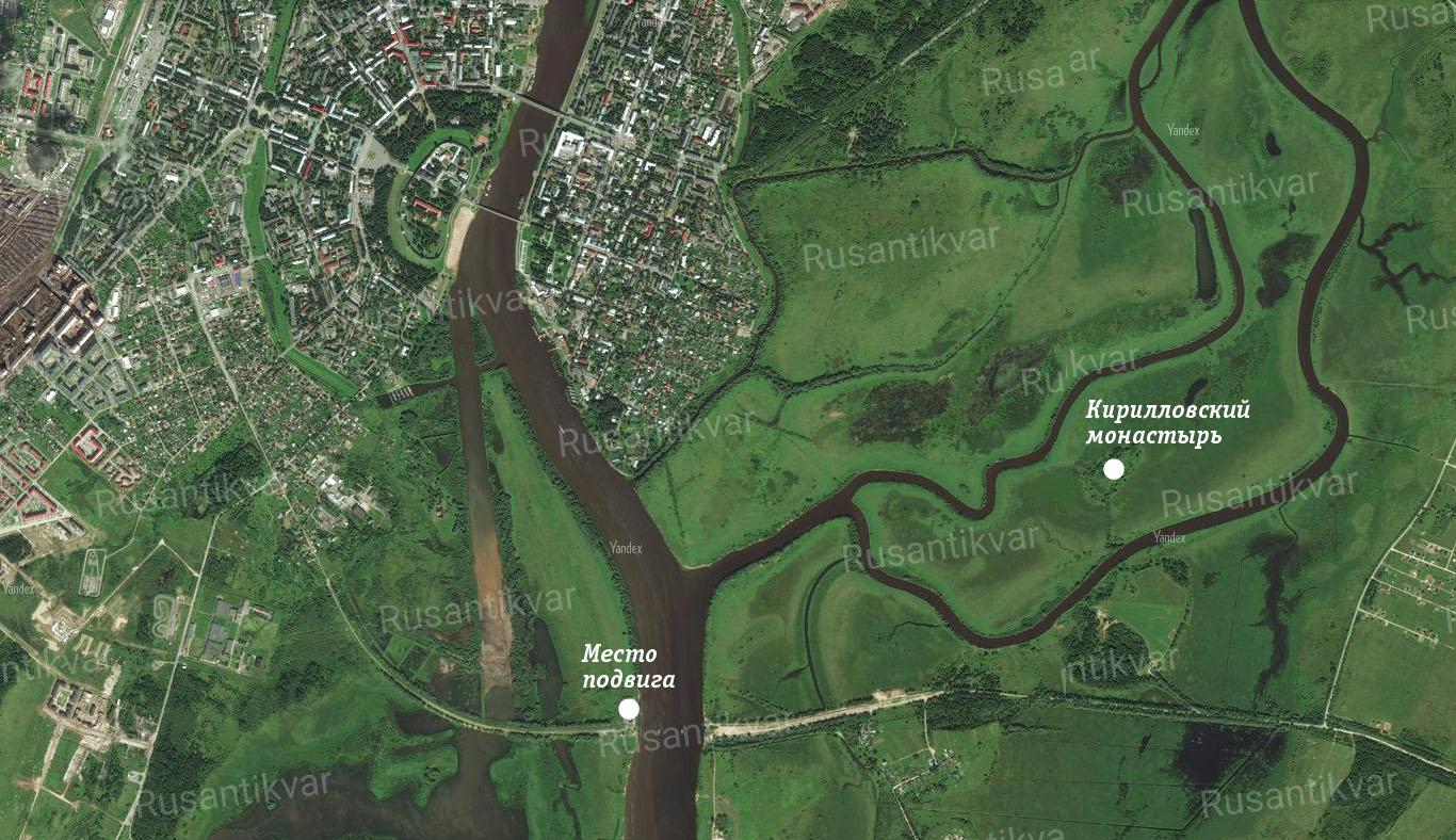 Ещё через три месяца, 29 января 1942 года, в устье Малого Волховца в нескольких сотнях метров южнее Кирилловского монастыря при уничтожении опорного пункта противника в районе опор (так называемых «быков») недостроенного в 1917 году железнодорожного моста дороги Петербург - Орёл подвиг самопожертвования совершат бойцы бывшей 3-й танковой дивизии, переформированной к концу декабря 1941 года в 225-ю стрелковую. Сержант Иван Герасименко, красноармейцы Александр Красилов и Леонтий Черемнов закроют собой амбразуры вражеских ДЗОТов. Этот подвиг станет первым коллективным в истории войны.