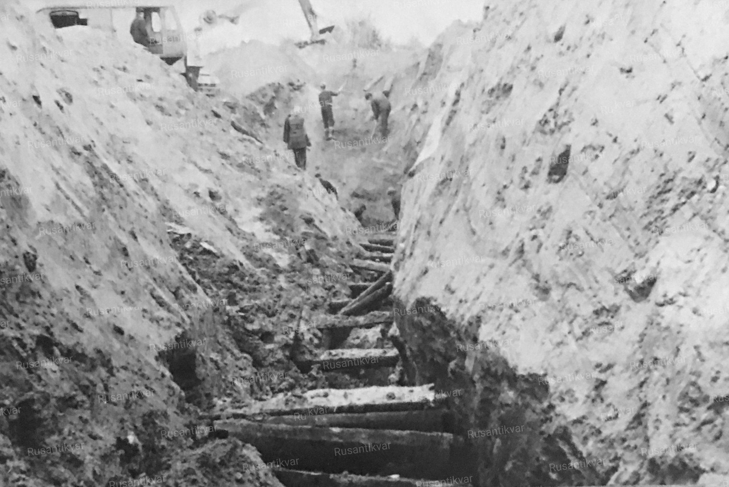 В этом году работы проходили гораздо быстрее. Экскаваторщики из Чудовской ПМК-7 Г.Т. Шабанов и В.Г. Кириллов снимали верхний слой и прокладывали семиметровую траншею над галереей, обнажая ее перекрытия. Бульдозерист совхоза «Березеево» В.П. Никитин занимался отвалкой грунта.