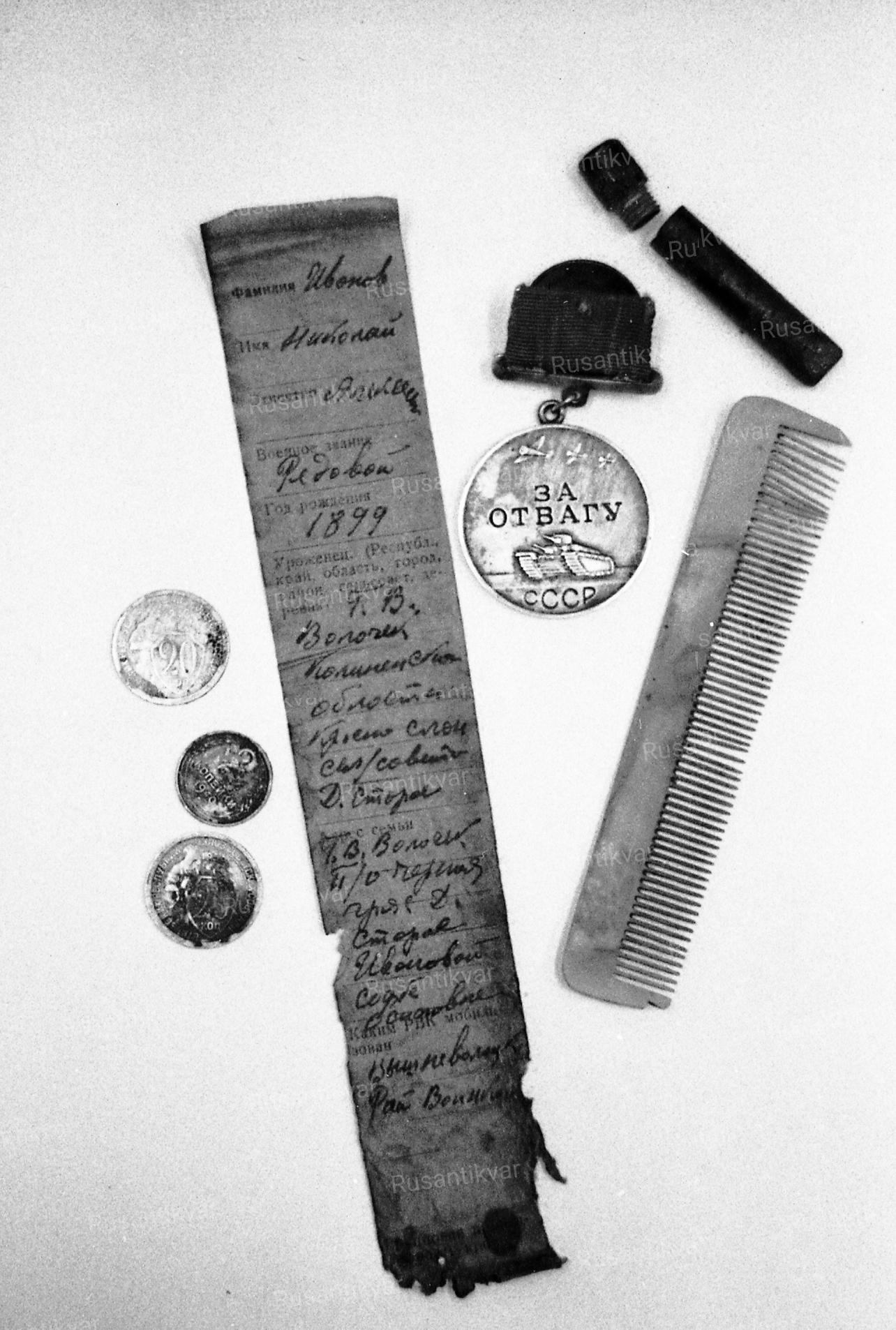 7. Бланк записки, медальон, медаль и вещи сержанта Иванова.