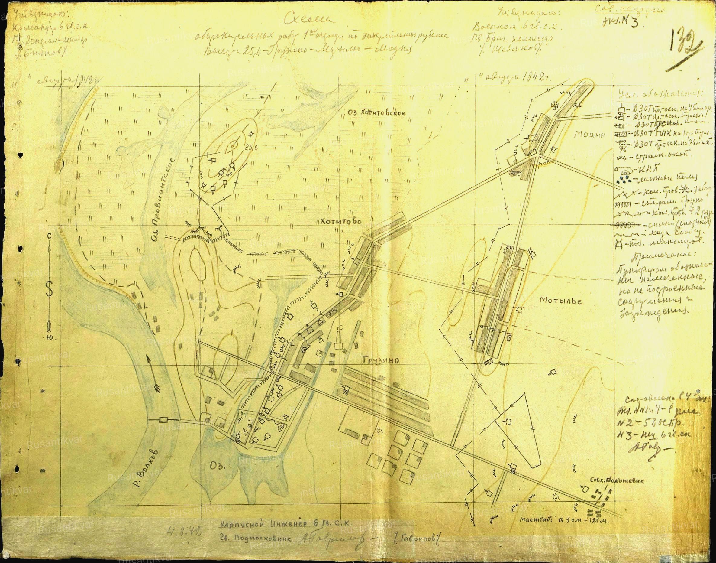 1. 206 артиллерийско-пулемётному б-ну по окончании учебного сбора, в ночь с 23 на 24.08.42 г. сменить 58-ю отд. стр. бригаду и 1016 стр. полк и упорно оборонять рубеж выс. 25.6, Модня, Хотилово, Грузино, (иск) Переход, свх Большевик. Задача прежняя…» (ЦАМО РФ ф. 1586 оп.1 д. 33 л. 128).