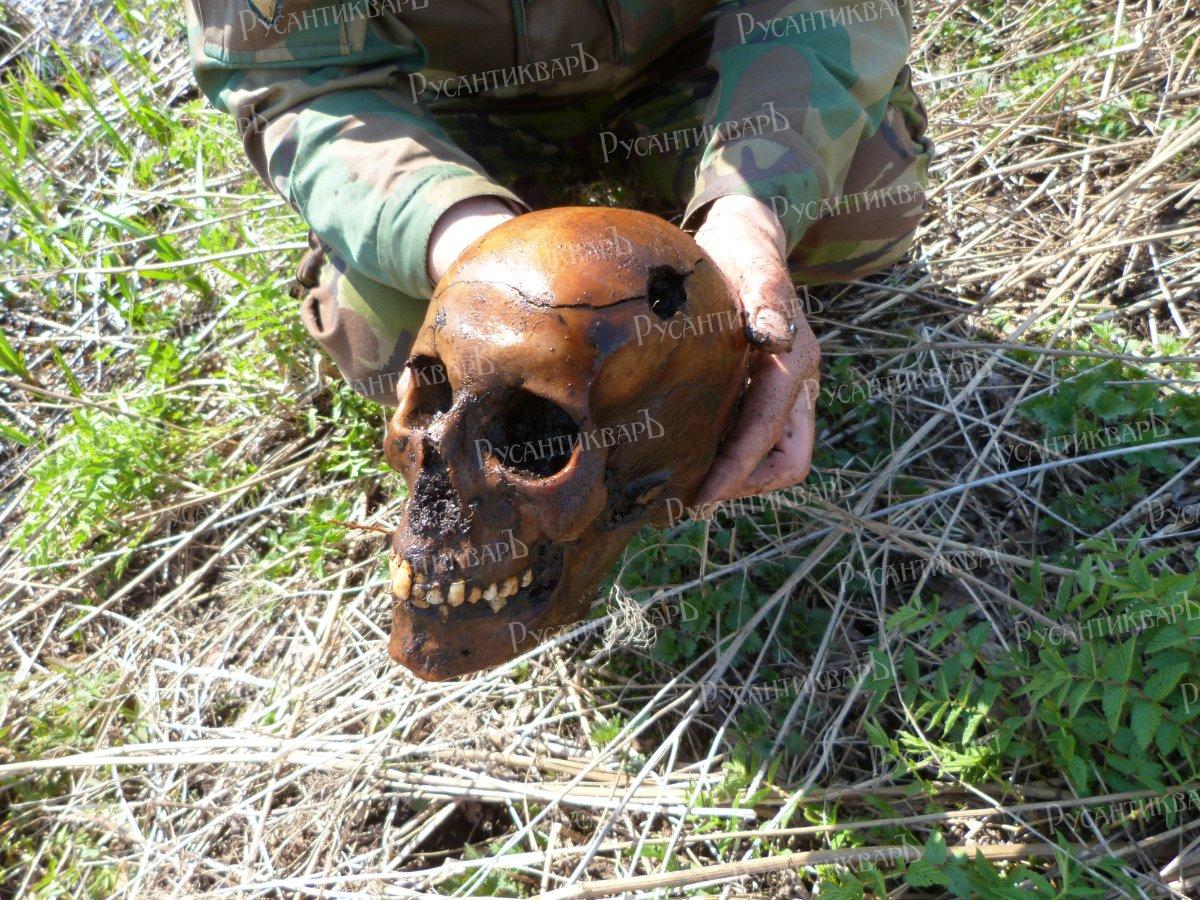 7.Нас поразила сохранность останков солдат, два века пролежавших в земле. Череп, пробитый ружейной пулей.