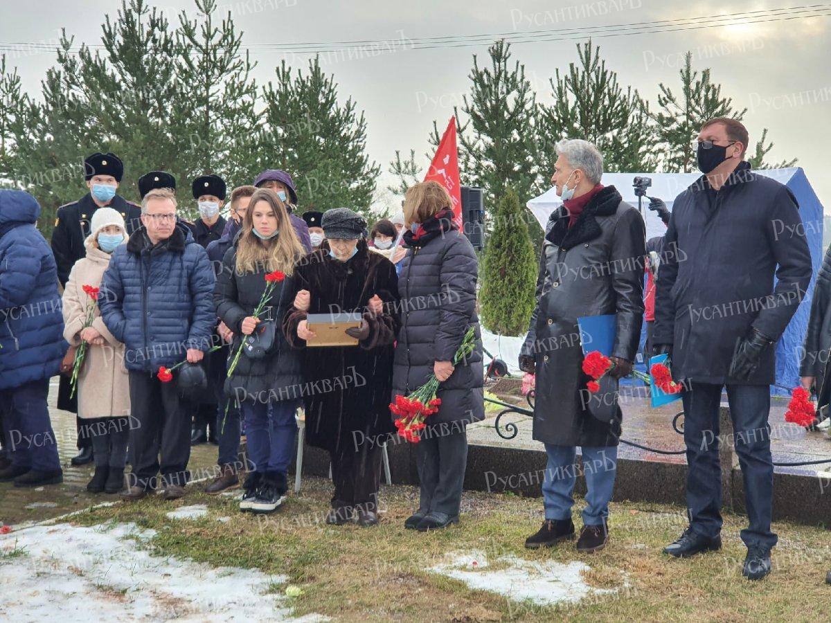 Дочь и внучка В.В. Иванова на церемонии захоронения останков погибших воинов в Гатчине.