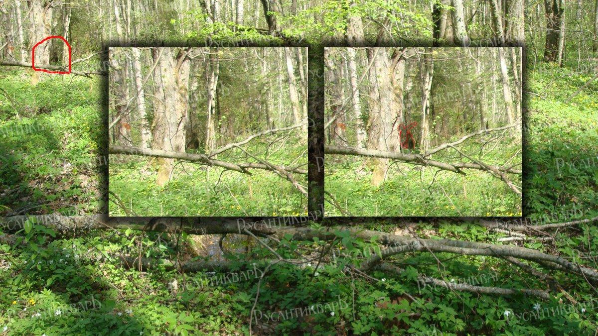 В тот день, после долгих скитаний по затопленным низинам, я и Света вышли на возвышенность, где нас привлекла усеянная гильзами небольшая воронка. Забегая вперед, скажу, что под гильзами и слоем многолетней листвы мы обнаружили останки, а за четыре дня работы нами были подняты четыре бойца Красной Армии. Результат для тех, кто работает по поиску «верховых» солдат просто великолепный. После одной из фото-фиксаций нашего раскопа я на радостях из-за тёплой погоды и красот тех мест, произвольно сделал несколько кадров округи. Чик - и зафиксировал, что справа, чик - и запечатлел, что слева. Птички поют, солнышко греет, по всей округе на полтора километра ни души, красота, одним словам. Тогда мы и не предполагали, что именно один из этих кадров станет душевной занозой на целых три года, с умопомрачительным результатом.