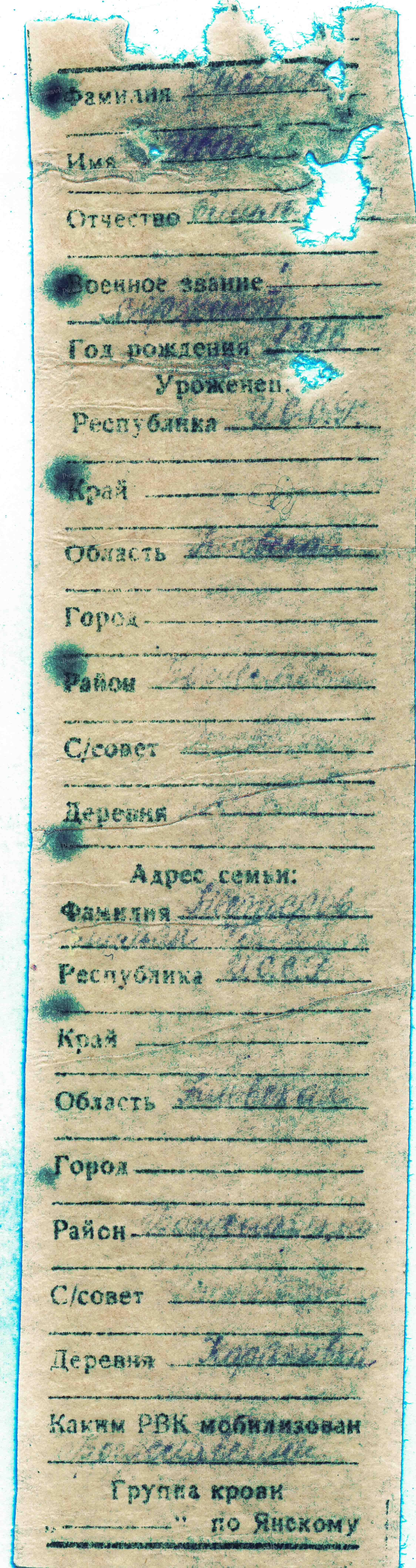 В результате проведенных компьютерных исследований на одном бланке медальона удалось прочесть: «Нестеров Иван, 1916 г.р., Киевская область, Богуславский район, призван Богуславским РВК».