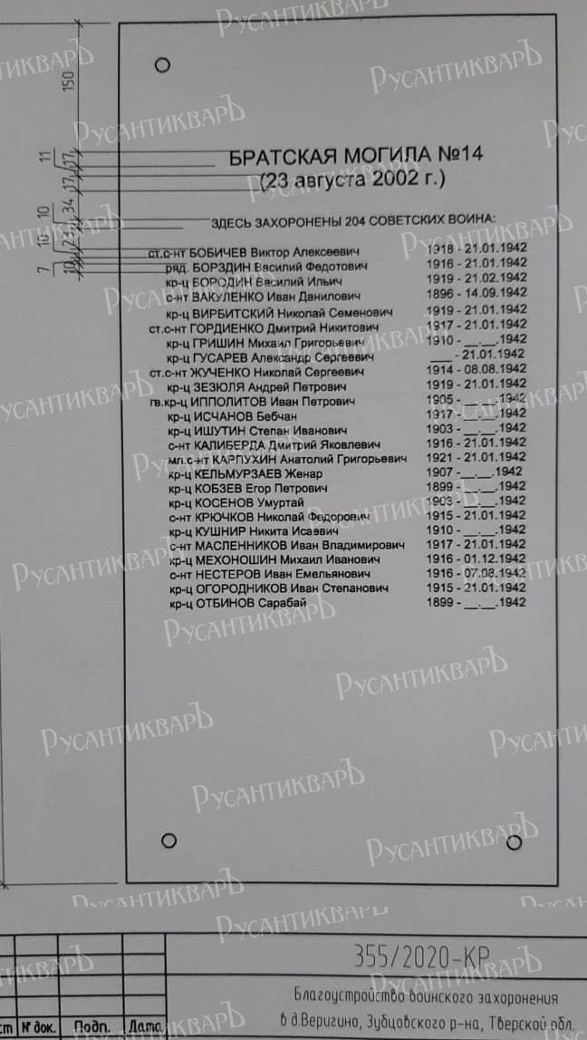 Фото. 8. Эскиз одной из будущих новых мемориальных плит воинского захоронения в д.Веригино.