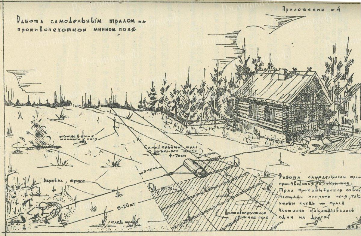 10. Работа самодельным тралом на противопехотном минном поле.