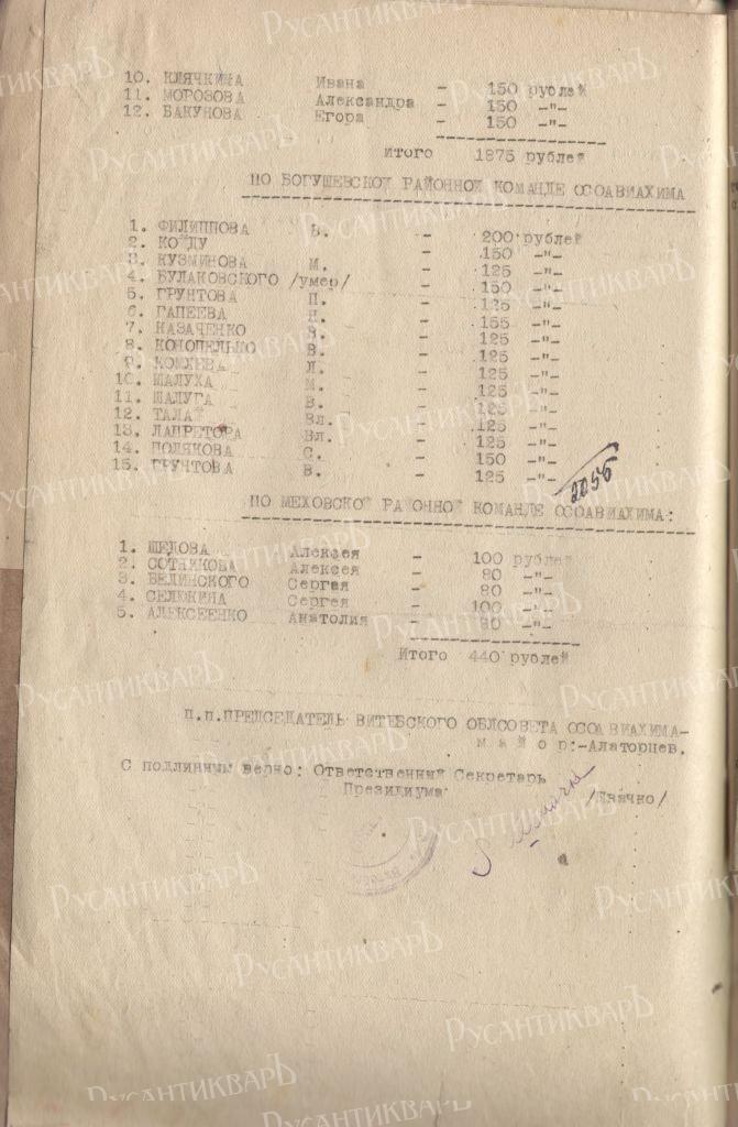 15. Выписка из приказа по Витебскому облсовету Осоавиахима о премировании. Л. 1.