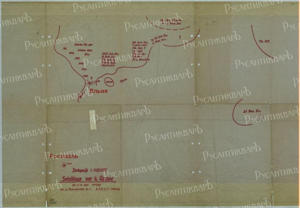 В донесении на 12:30 упомянуты: 21-я, один полк 17-й, 5-я (она же 113-я), один полк 8-й, 9-я сд. По дороге Рославль – Москва указано действие одной резервной дивизии (17-й сд), у которой была захвачена карта полка .