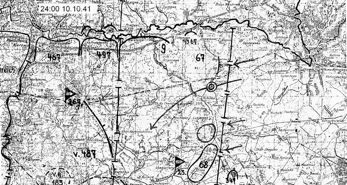 Рис. 12. Фрагмент карты 7-го ак по состоянию на 24:00 10.10.41 г. Из фондов NARA.