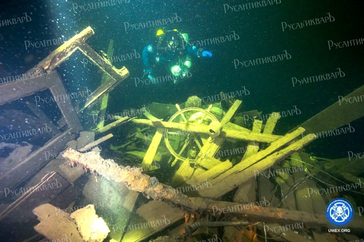19. Штурвал парохода «Эверита», останки которого обнаружены на глубине 106 метров. Фото: «Разведывательно-водолазная команда».
