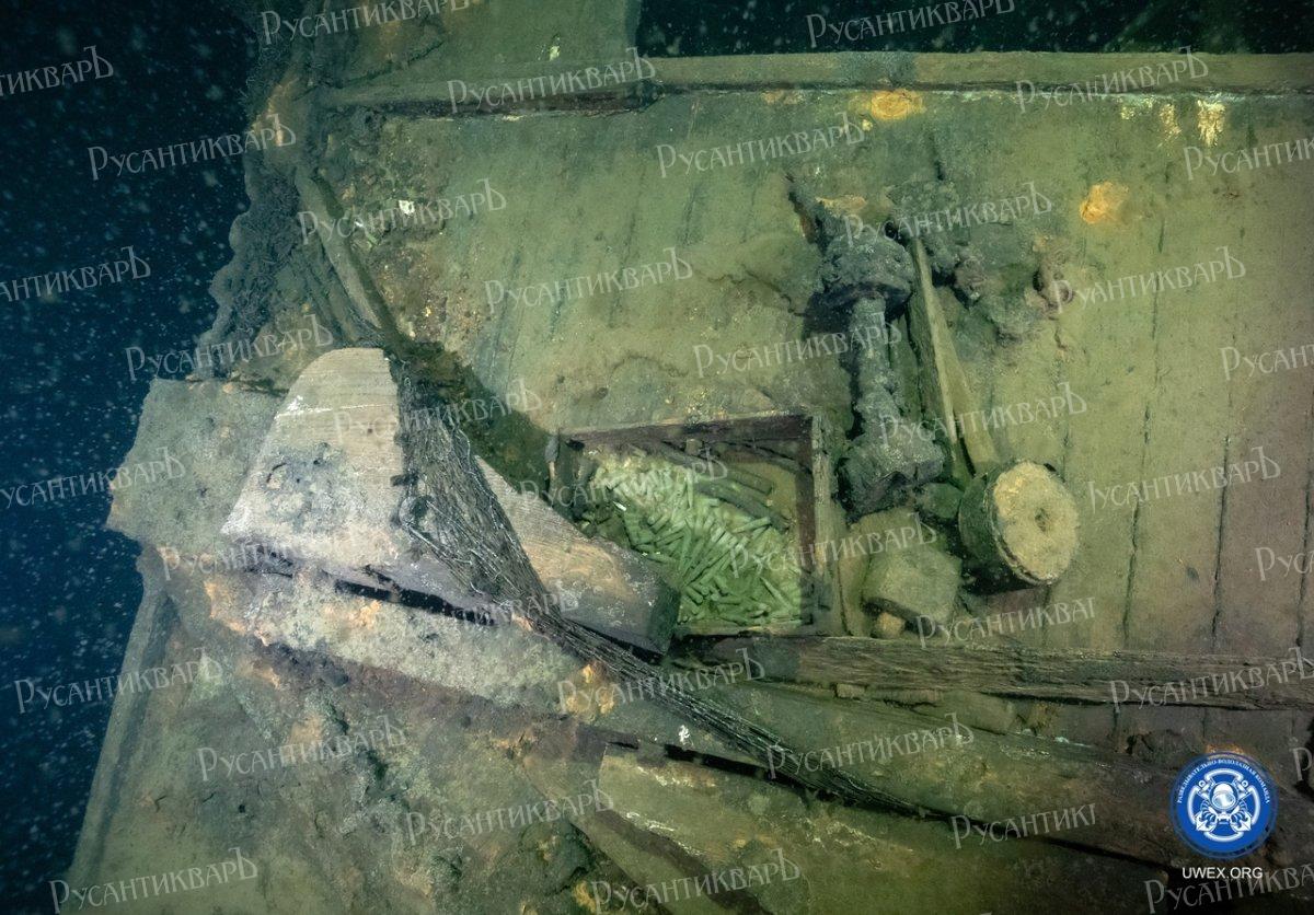 «Почти все обнаруженные суда сильно затянуты сетями, что осложняло проведение обследований. На палубе и в трюмах всех найденных транспортов обнаружены многочисленные остатки амуниции, стрелковое оружие», - отметил руководитель экспедиции.