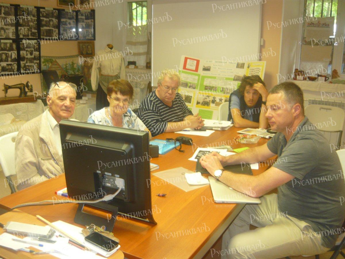 Уже в июне Марк Михайлович с сыном Михаилом и внуком Андреем приехали в Москву, встретились в Музее Зюзинской волости с краеведом Тихоновым Игорем Сергеевичем и редактором «Московской правды» Бухариной Бертой Христиановной, посмотрели слайд-фильм о двух экипажах «С боевого задания не вернулись», сделанный Ярославцевой С.И. в 2014 г. для доклада в Московском краеведческом обществе. Илл. 1.