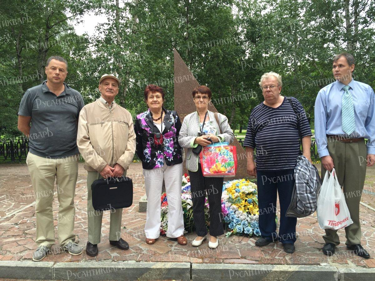 20.06.2015. У памятника в бирюлёвском Школьном сквере (слева направо): Тревгода Михаил Маркович, Тревгода Марк Михайлович, Ярославцева Светлана Ивановна, Бухарина Б.Х., Тихонов И.С., бирюлёвский краевед Какоткин Василий Олегович.