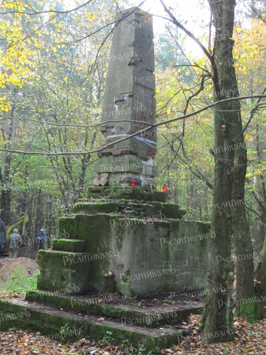 Бывший стадион располагался в десяти минутах езды от нашего «отеля» - в достаточно густом лиственном лесу, недалеко от оживленного шоссе. Само поле, где ранее находились могилы наших солдат, тоже уже поросло деревьями и кустарниками. Повсюду виднелись следы ранее проводившихся раскопок – неровности грунта, оставленные после закапывания могил или шурфов. Примерный периметр кладбища-стадиона был обозначен полосатой лентой, а в его центре величественно и страшно возвышался бывший когда-то ухоженным обелиск. Штукатурка его осыпалась, обнажив еще крепкие кирпичи, привезенные, быть может, от разрушенных укреплений Кюстринского бастиона. Поверхность памятника покрылась зеленым мхом, плиты основания частично раскололись, кто-то написал на нем краской нехорошие слова, но он стоит. И простоит, скорее всего, пусть даже и в таком виде, еще пятьдесят лет…