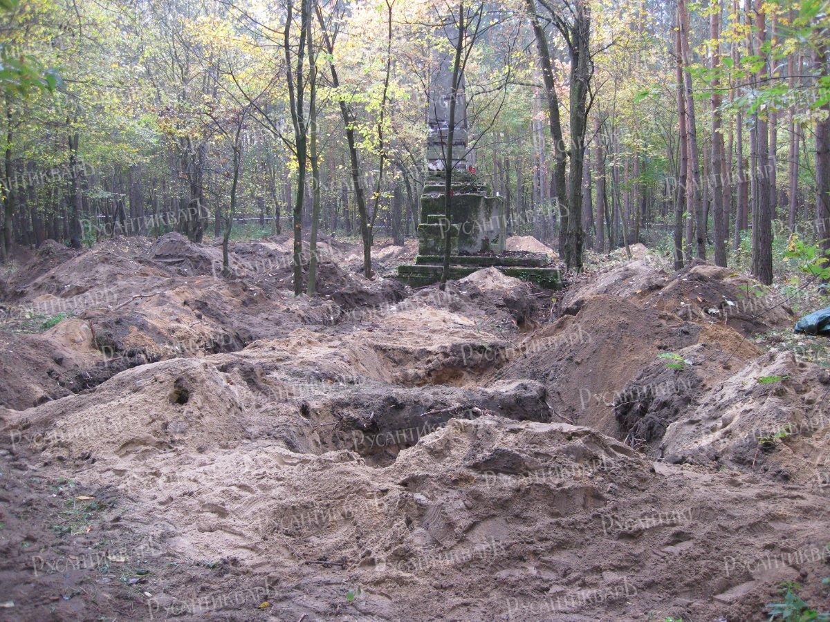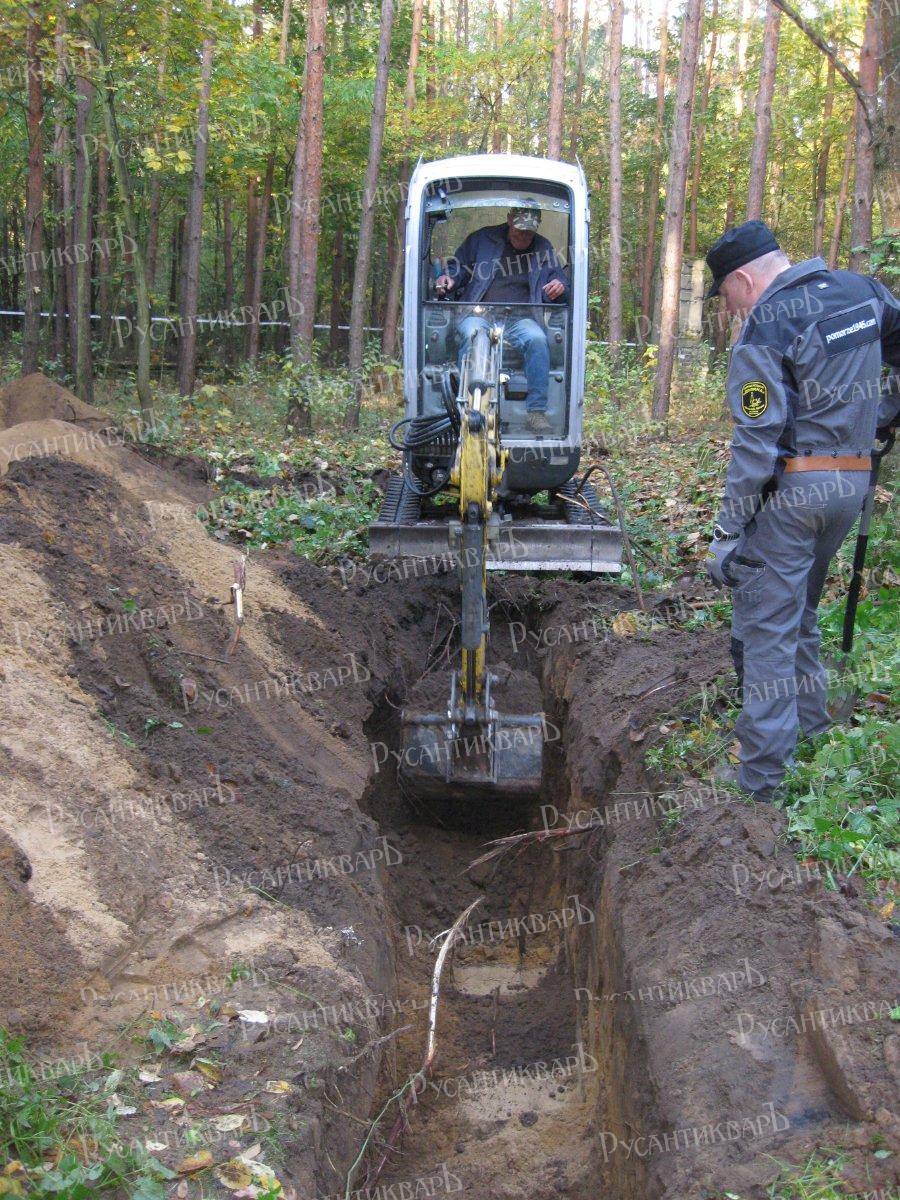 Андрис Федотов, командир поисковой организации «Даугава» из Латвии ввел нас в курс дела. Трудность работы в этом месте заключалась в том, что, во-первых – мы не знали, откуда конкретно и как переносились могилы в 50-е годы; во-вторых – на кладбище неоднократно хозяйничали мародеры; в-третьих - недавние эксгумационные работы проводились не планомерно, а хаотично, поэтому выбранную и закопанную могилу трудно было отличить от затронутой мародерами. Вот поэтому и понадобился небольшой экскаватор, который нам удалось нанять в городе. Забегая вперед, хочется отметить, что некоторые латвийские друзья поначалу были категорически против работы с помощью тяжелой техники. Однако потом нам на деле удалось переубедить их в полезности экскаватора, естественно, если речь идет о нетронутом захоронении, а не о переборке мародерских отвалов.