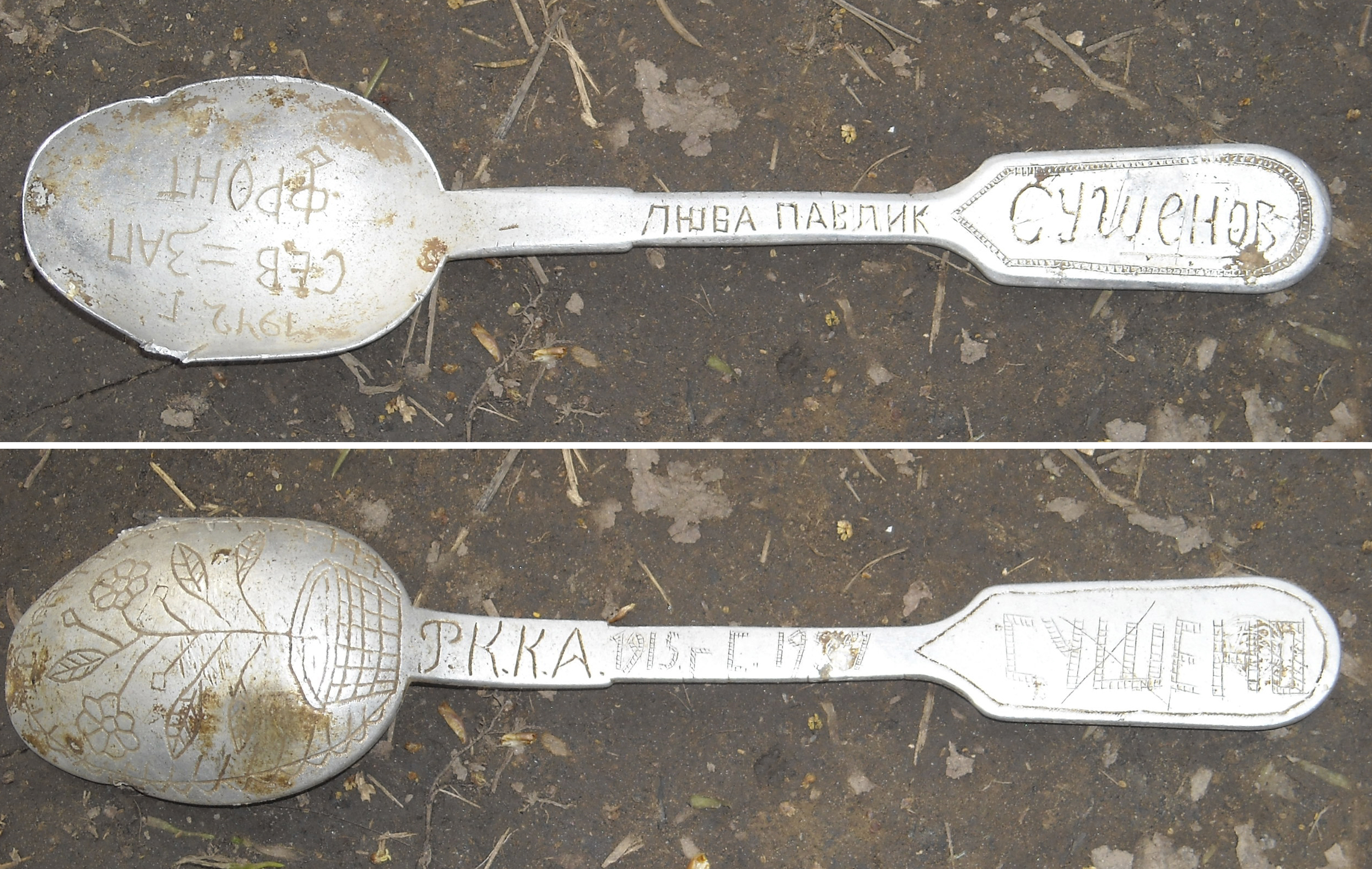 Весной 2012 года в районе урочища Сутоки Старорусского района Новгородской области членами поискового отряда «Фронт» Кировской государственной медицинской академии, неподалеку от останков бойца, была обнаружена подписанная солдатская ложка. На алюминии было вырезано: «Сушенов, Люба Павлик, 1942 г. СЕВ=ЗАП ФРОНТ, РККА 1915 г. с 1937».