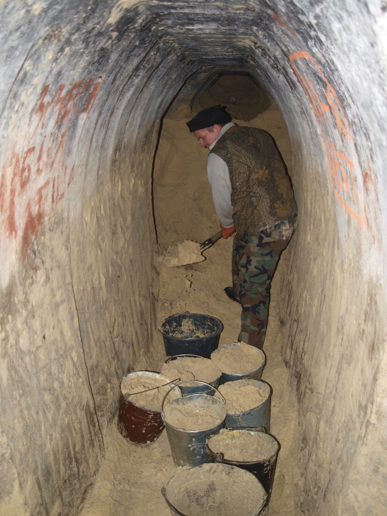 Восстановление ДОТов для нас процесс особенный - каждый раз мы чему-то учимся, разрабатываем новые технологии, закрепляем старый опыт, приобретенный на предшествующих сооружениях. Начинали когда-то просто с очистки от мусора, а теперь заливаем бетоном дворики, заделываем орудийные пробоины, прокладываем дренажи для отвода грунтовых вод, проводим электричество и воссоздаем в аутентичном виде внутреннее оборудование и вооружение долговременных огневых точек. Причем с пошаговым описанием и фотофиксацией, дабы ничего не пропустить. В этом году решили замахнуться на ДОТ, посложнее обычного - это сооружение минного типа (от французского le mien – шахта), имеющее разветвленную сеть подземных галерей. ДОТ 179…Протяженность этих подземелий 227 метров. Их сильно замыло грунтом, потому пройти можно было с трудом - где-то пригнувшись, где-то на корточках, а где-то только ползком. В вертикальную шахту, которая по нашим предположениям достигала глубины 7-8 метров и соединяла подземные галереи с вершиной холма, можно было попасть только сверху и опуститься всего на три метра, встав на годами слежавшийся пикниковый мусор. Входной блок с подножия холма - основной вход в сооружение.