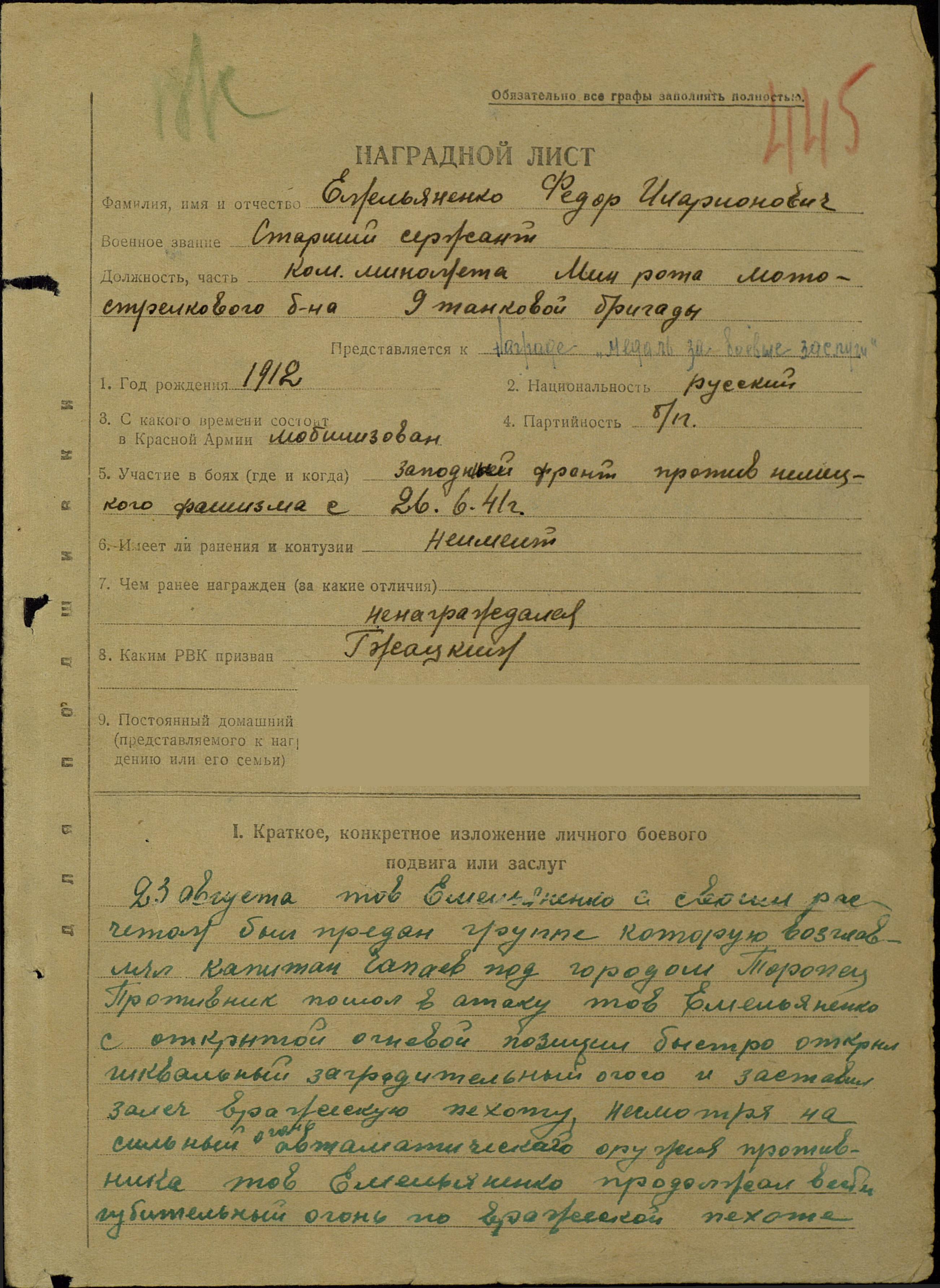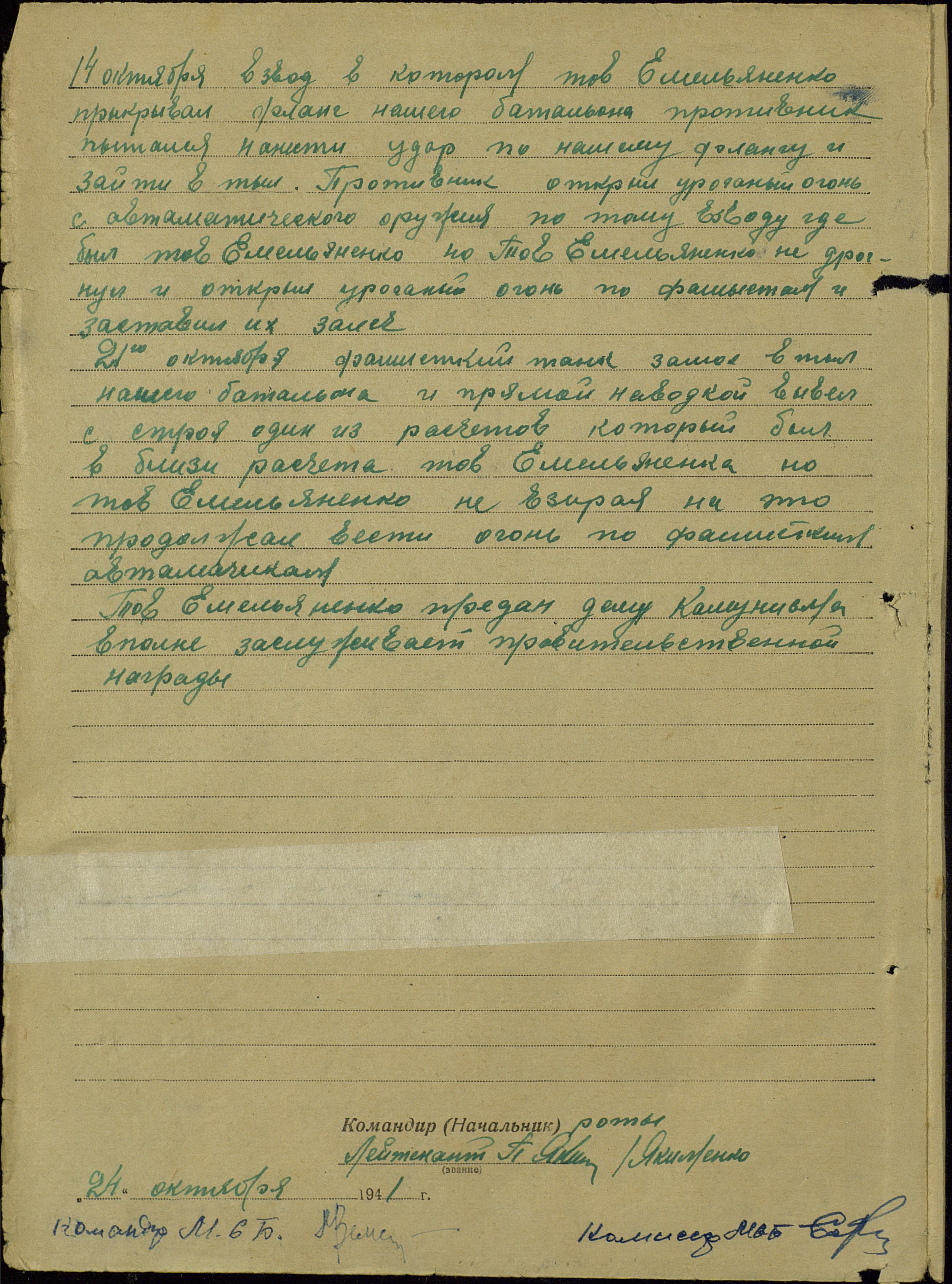 4.Наградной лист Ф.И. Емельяненкова. Упоминаемый в нем капитан Чапаев — сын комдива Гражданской войны В.И. Чапаева..jpg[/attachment]
