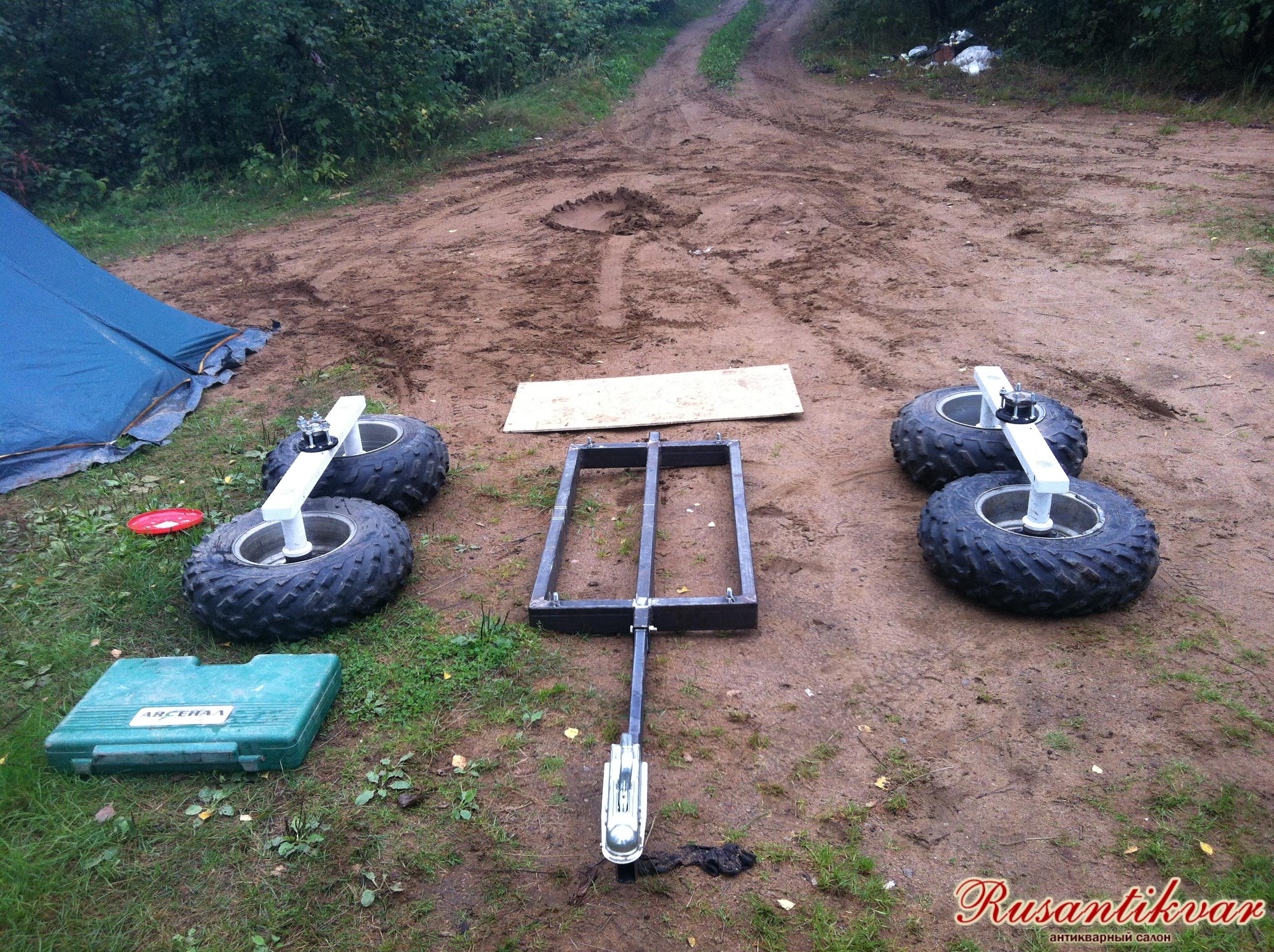2. Слегка перекусив, мы приступили к сборке прицепа, сваренного накануне экспедиции как раз для доставки дров и для других бытовых нужд.