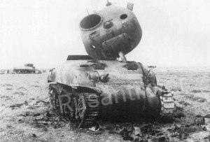 От взрыва башня отлетела в сторону. Некоторое время я был занят, что перебегал от одной норы к другой вновь выстраивая нашу оборонительную линию. Все пехотные офицеры были убиты или ранены и стрелки полностью положились на меня. После этого в полную силу вновь начался обстрел, мы отвечали им таким же образом. Шестой «Шерман» на соседнем поле стал жертвой этой дуэли. Он взорвался, выбросив из себя струю пламени.»