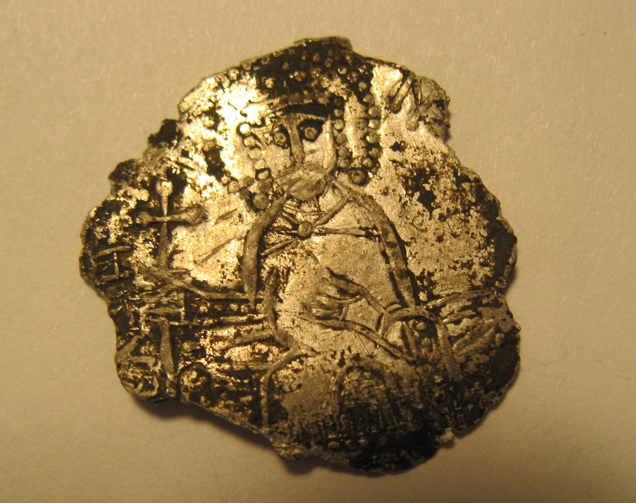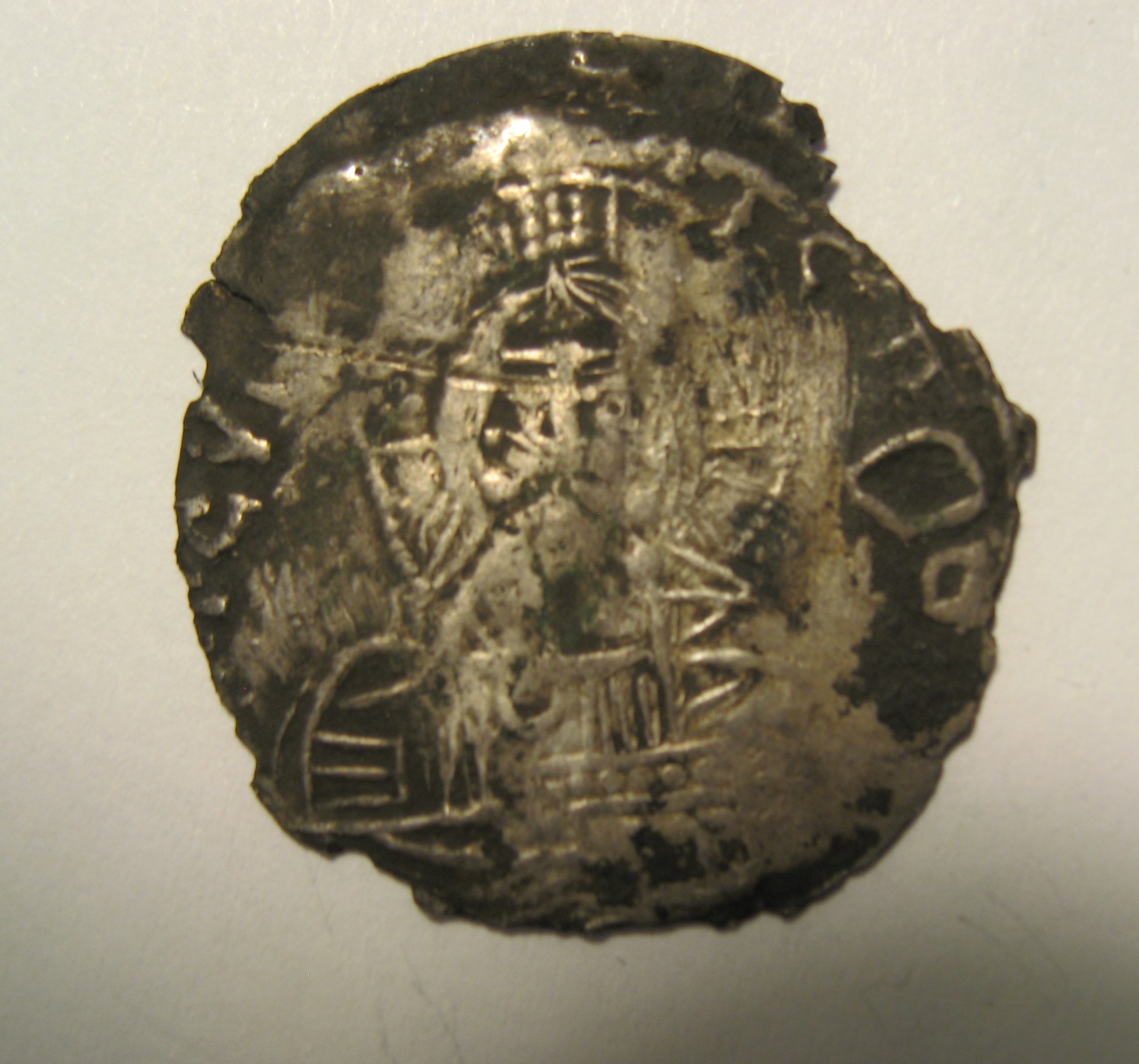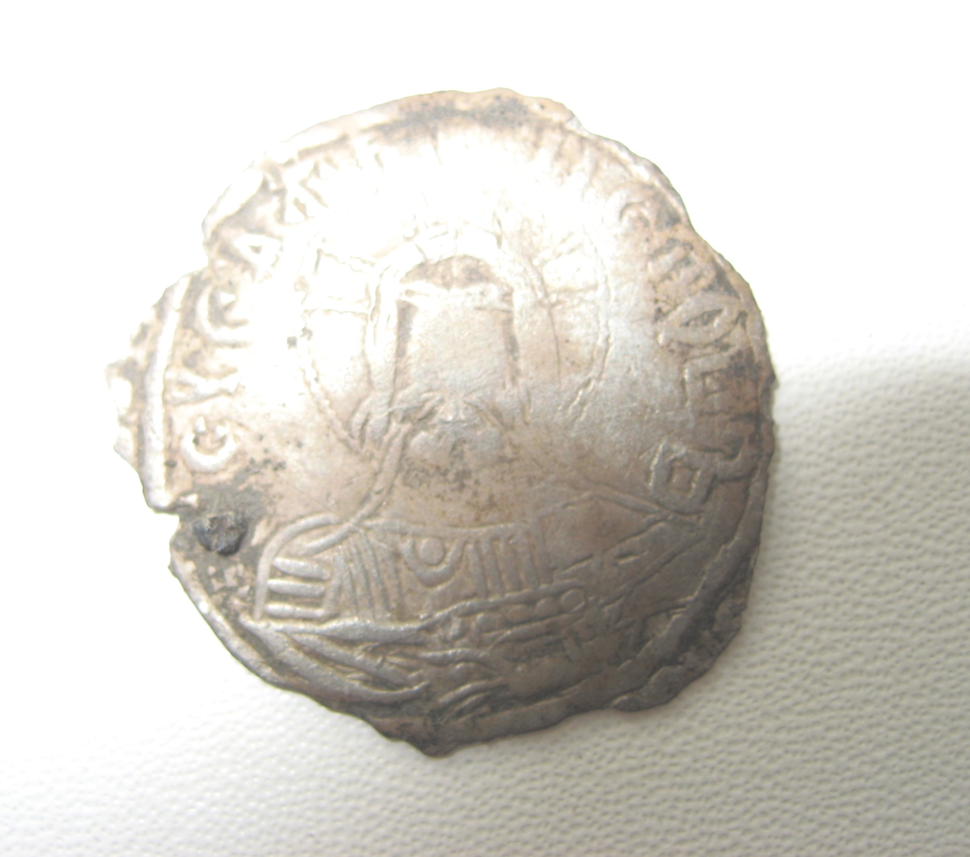 серебряный брактеат(сребреник) Олега-Михаила Святославича, отчеканенного в Тмутаракани после его возвращения из византийской ссылки после 1083 года.Вес 1.7 гр.