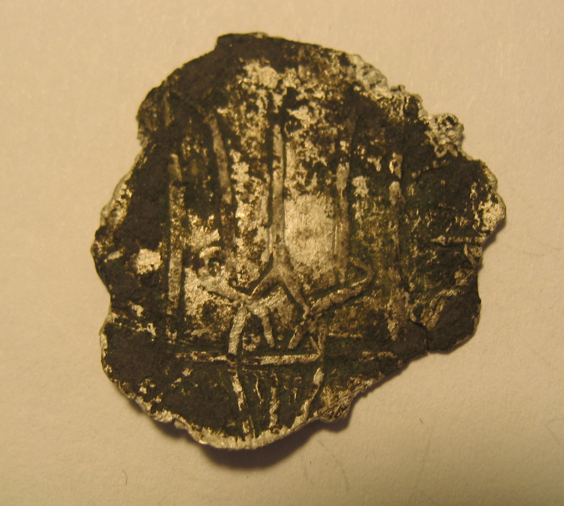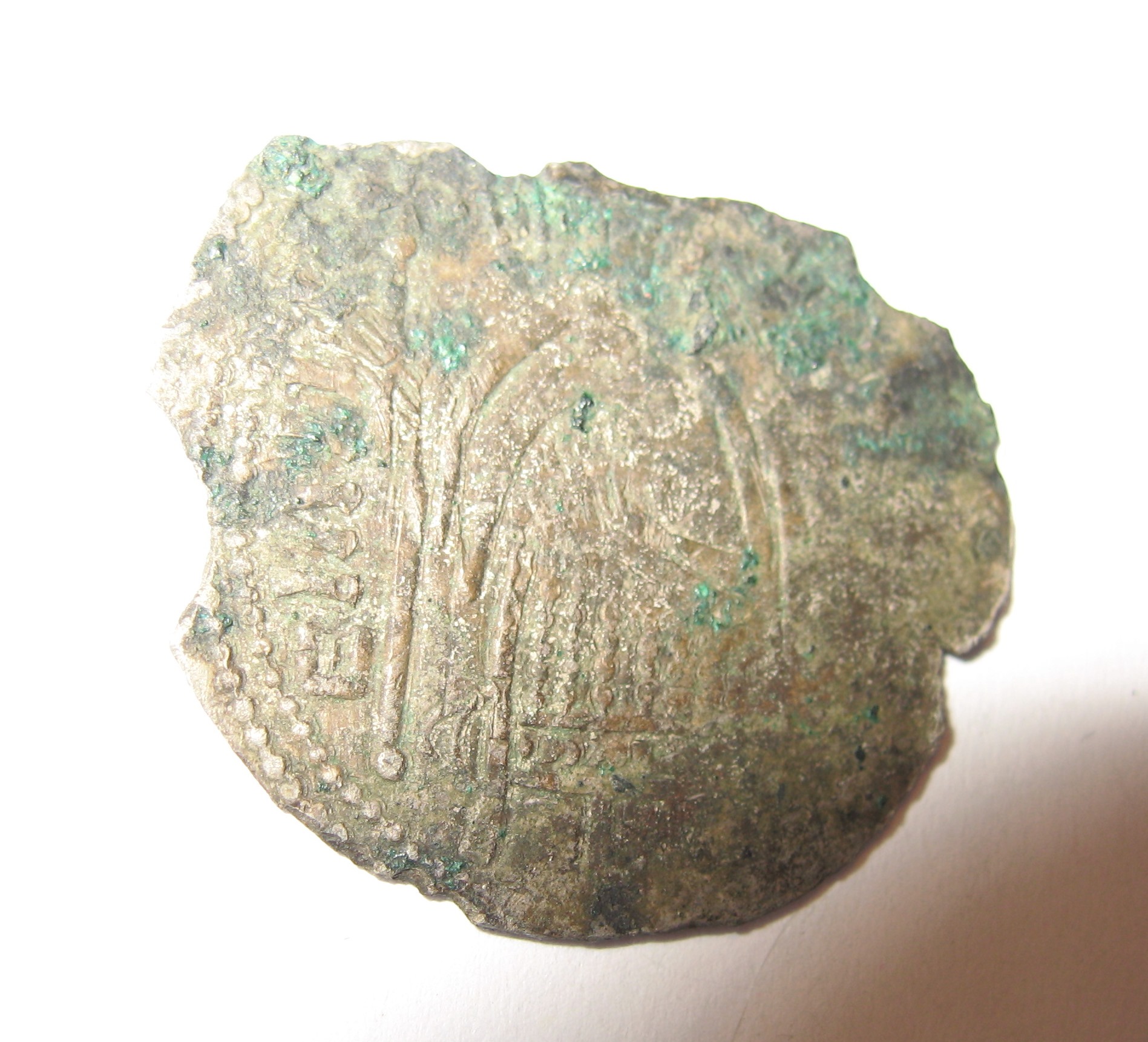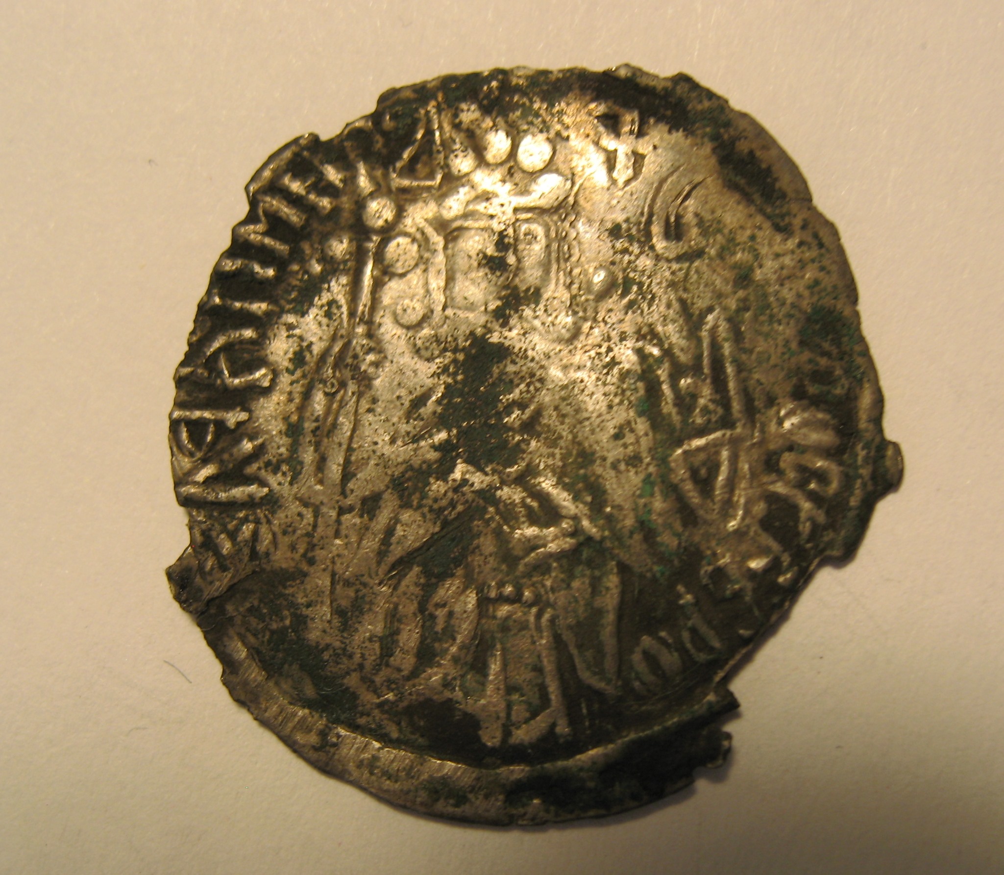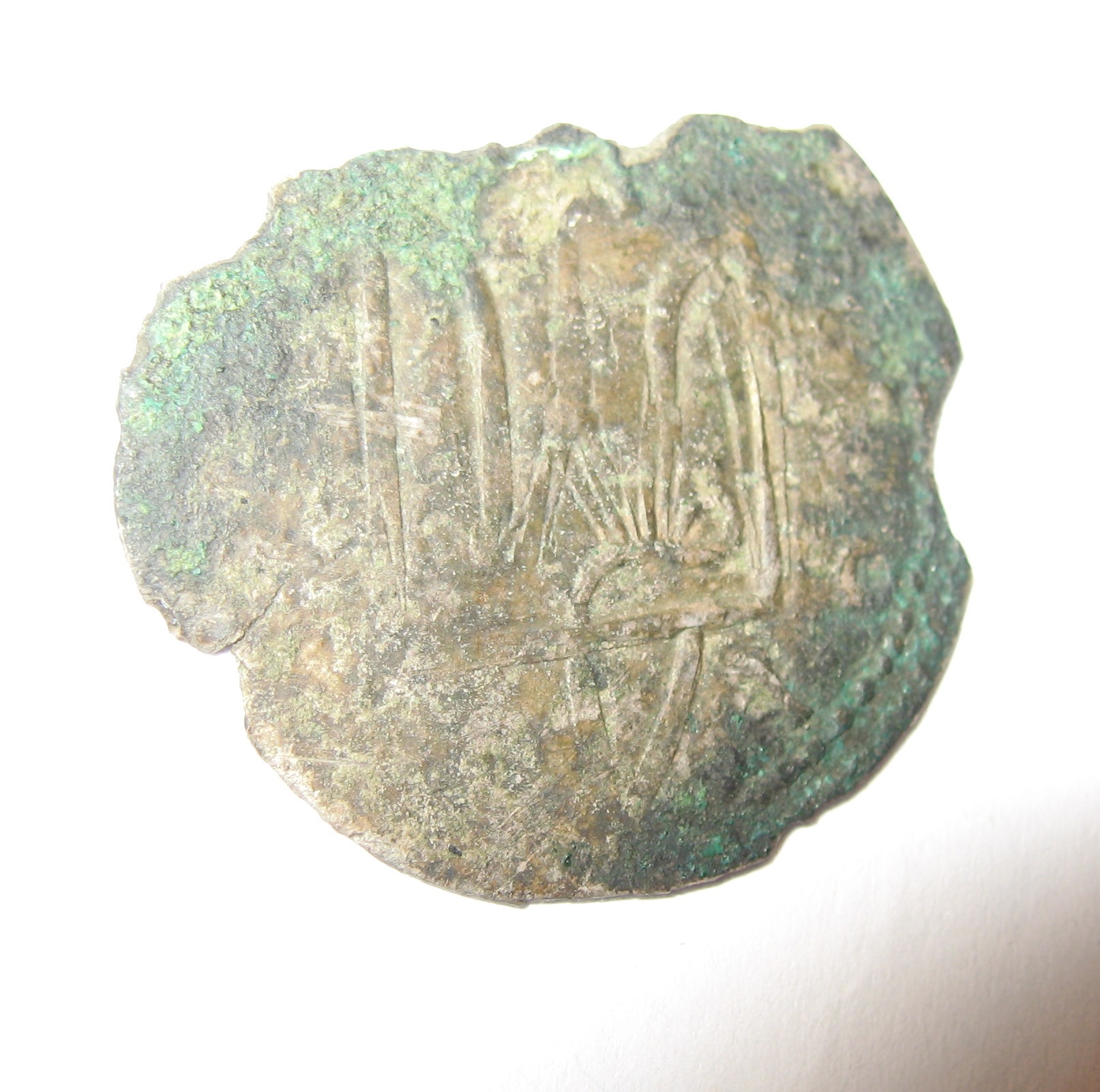 серебряный брактеат(сребреник) Олега-Михаила Святославича, отчеканенного в Тмутаракани после его возвращения из византийской ссылки после 1083 года.Вес 1.7 гр.