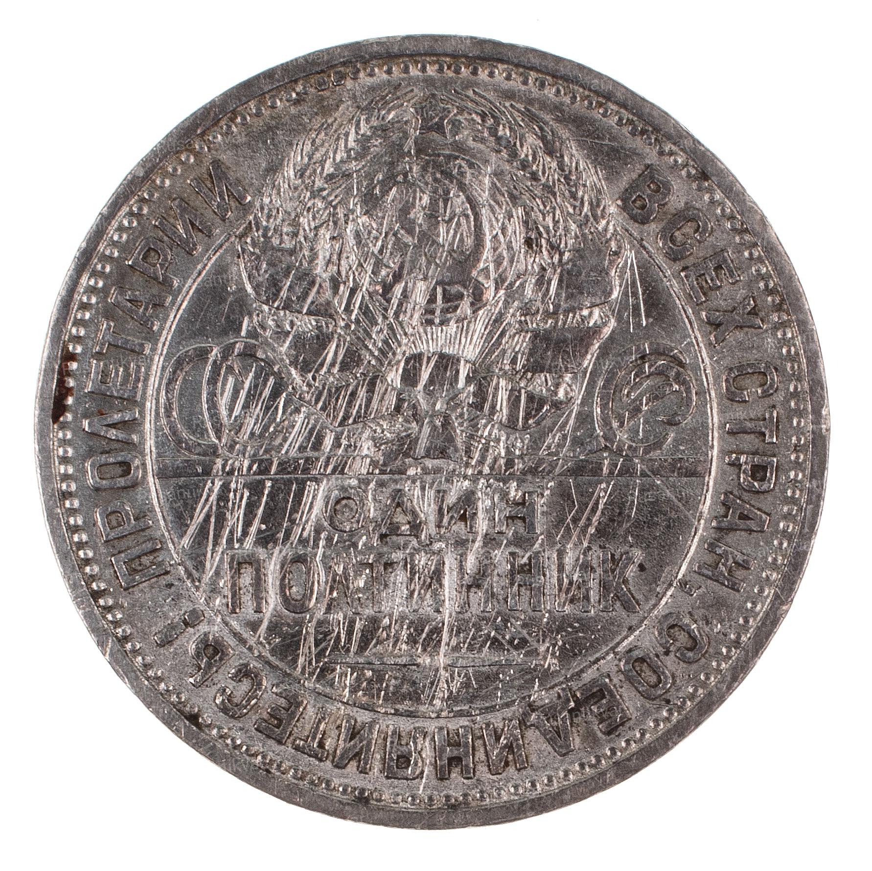 Эти красивые серебряные монеты, сегодня может служить ярким примером искусства и одним из символов раннего Советского государства. Полтинники или 50 копеечные монеты повторяли царскую монетную стопу, вес, толщину, диаметр, оформление гурта, а отличие было только в оформлении рисунка сторон. Власти начали чеканку крупных монет из серебра ещё в 1921 году, тогда у полтинников на аверсе был изображён герб РСФСР, а на реверсе пятиконечная звезда. С 1924 года, после образования Советского Союза, дизайн монет тоже изменился, в таком виде полтинники выпускались до 1927 года, а мелкие 10, 15, 20 копеек чеканили из биллона (серебра 500 пробы) вплоть до 1930 года. В дальнейшем выпуск серебряной тиражной монеты прекратили из-за дороговизны и до 60-х годов номинала 50 копеек и рубль на монетах не существовало. В 1961 50 копеек стали изготавливать из обычного медно-никелевого сплава.