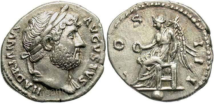 * Дата чеканки: конец 125 г. — нач. 128 г., Рим (BMCRE, RIC); 128 г., Рим (RCTV).