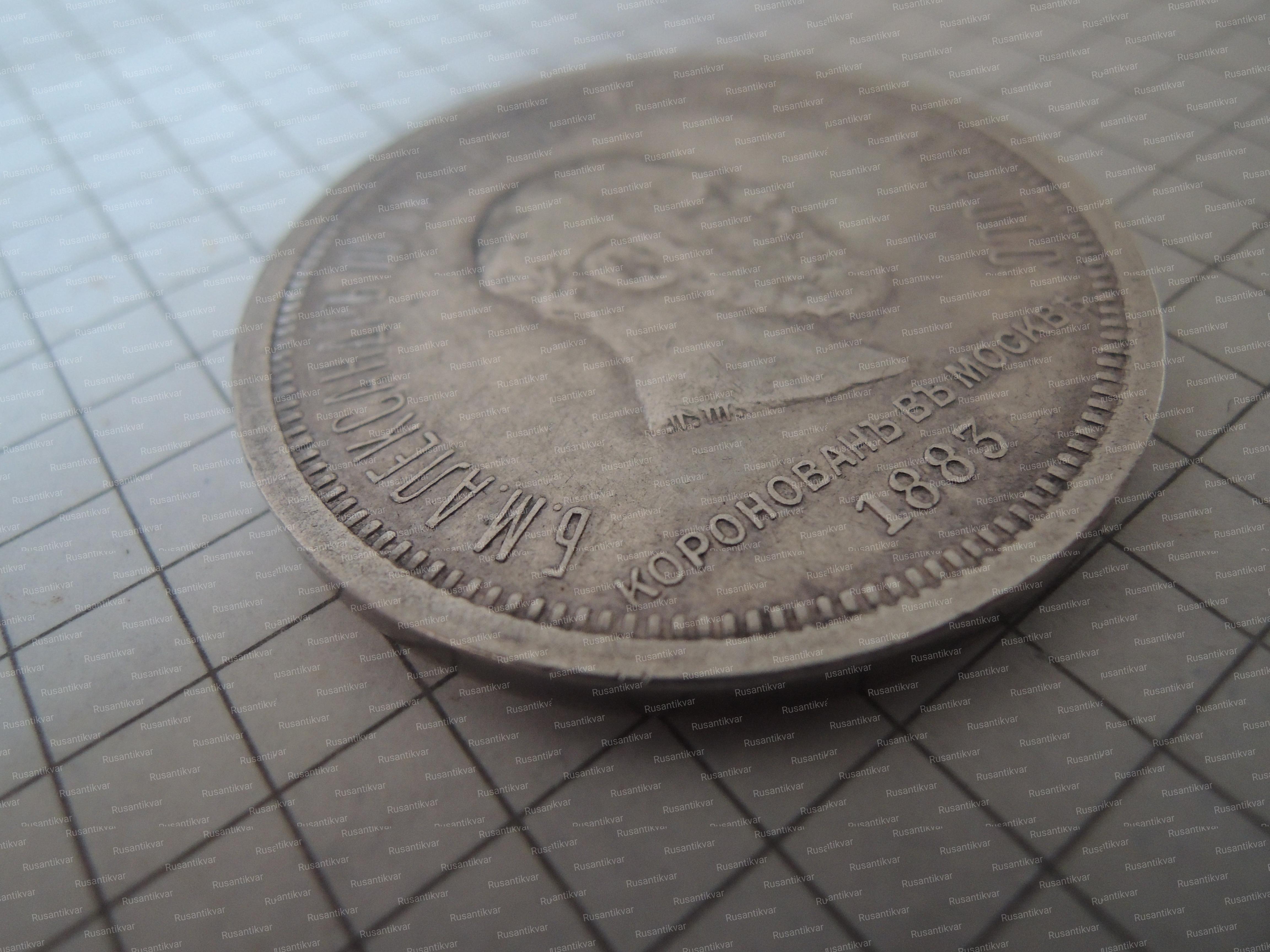 На аверсе: портрет императора «вправо», по кругу «Б.М. АЛЕКСАНДРЪ III ИМПЕРАТОРЪ И САМОДЕРЖ. ВСЕРОСС.», под портретом «КОРОНОВАНЪ В МОСКВЕ 1883».