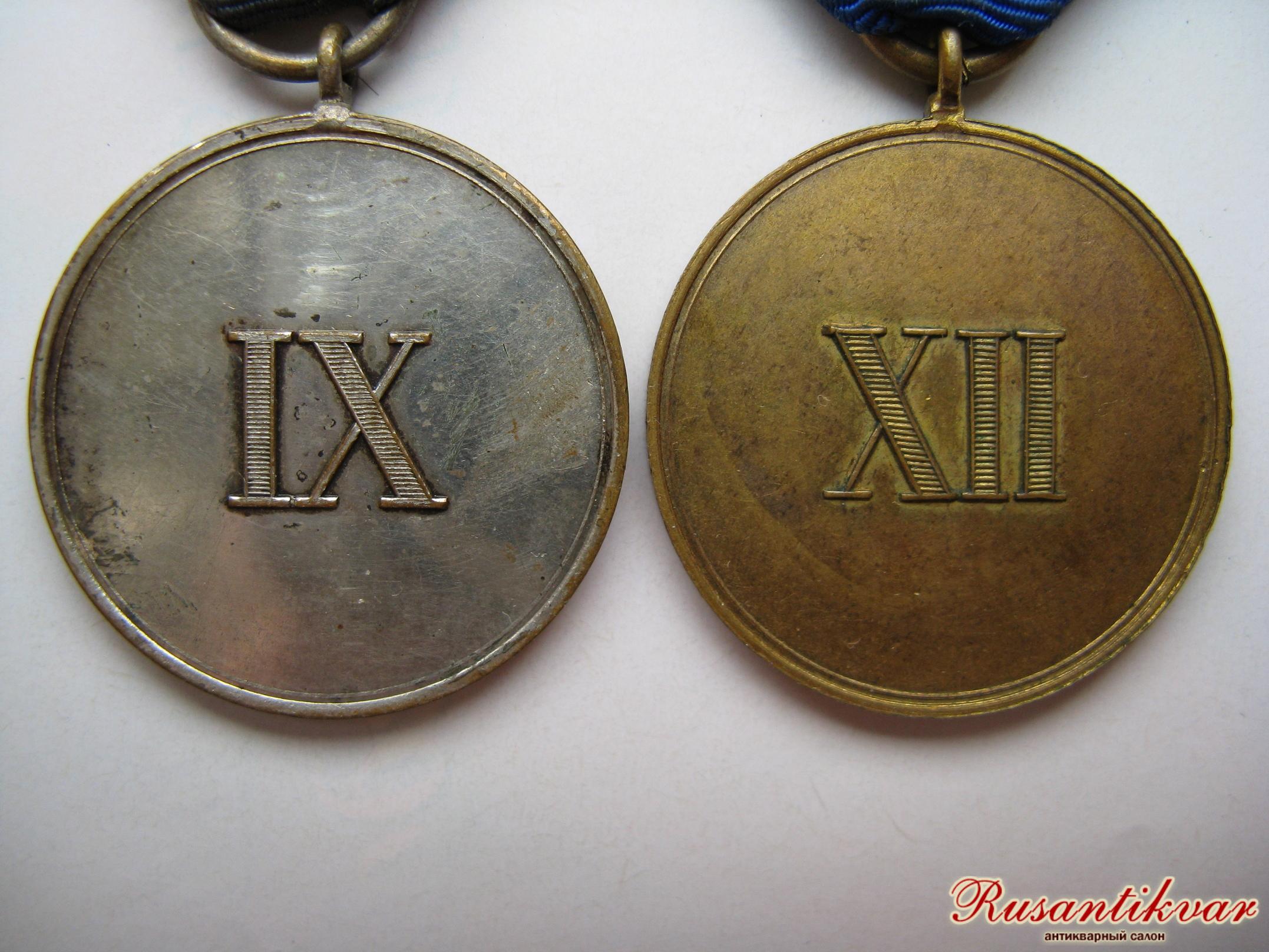 СЛЕВО- ПРУССИЯ.МЕДАЛЬ "ЗА 9 ЛЕТ ВЫСЛУГИ В АРМИИ". СПРАВА - ПРУССИЯ.МЕДАЛЬ "ЗА 12 ЛЕТ ВЫСЛУГИ В АРМИИ". Ленты - оригинал. цена - 2 500 рублей за штуку + почта.