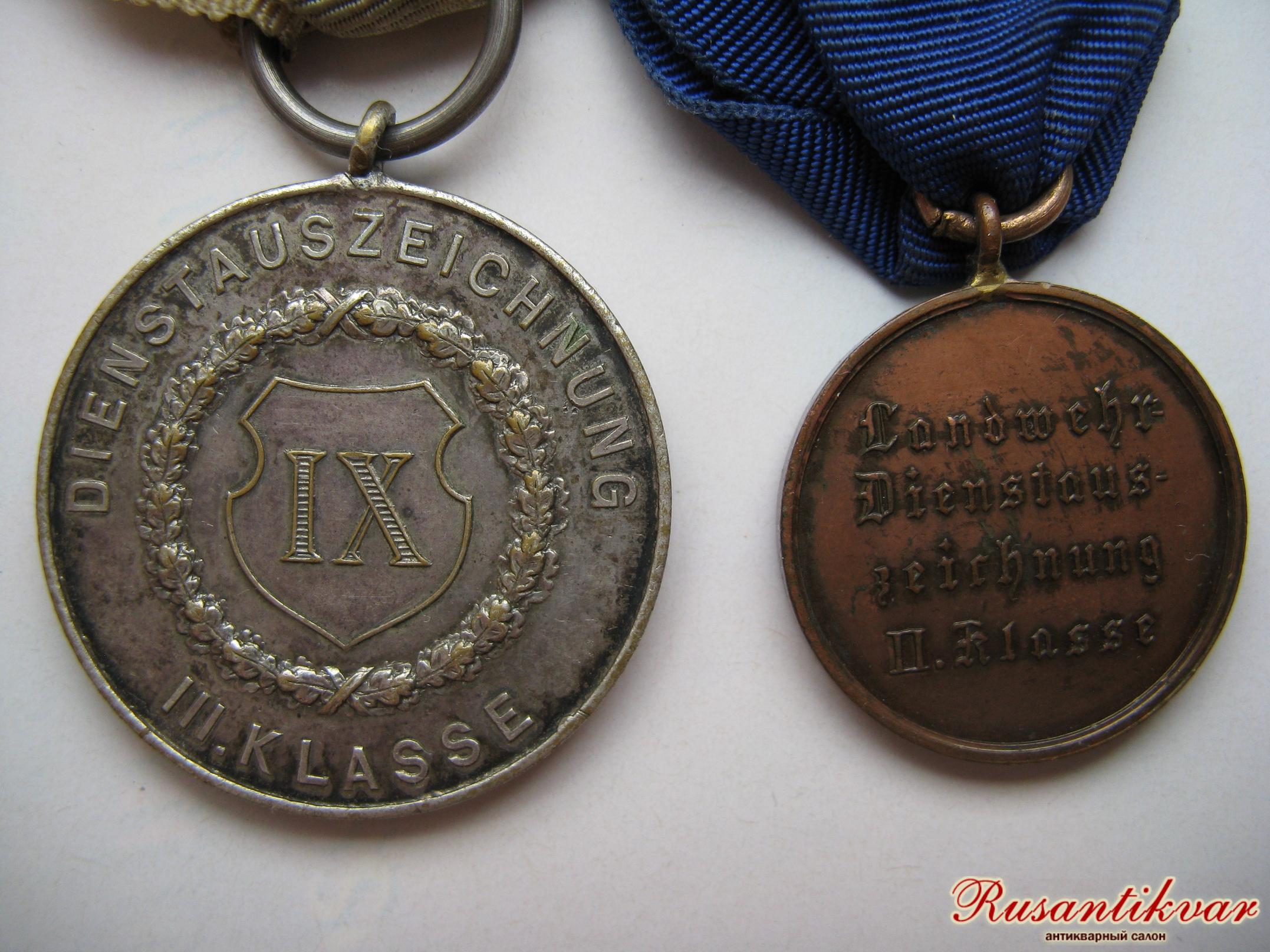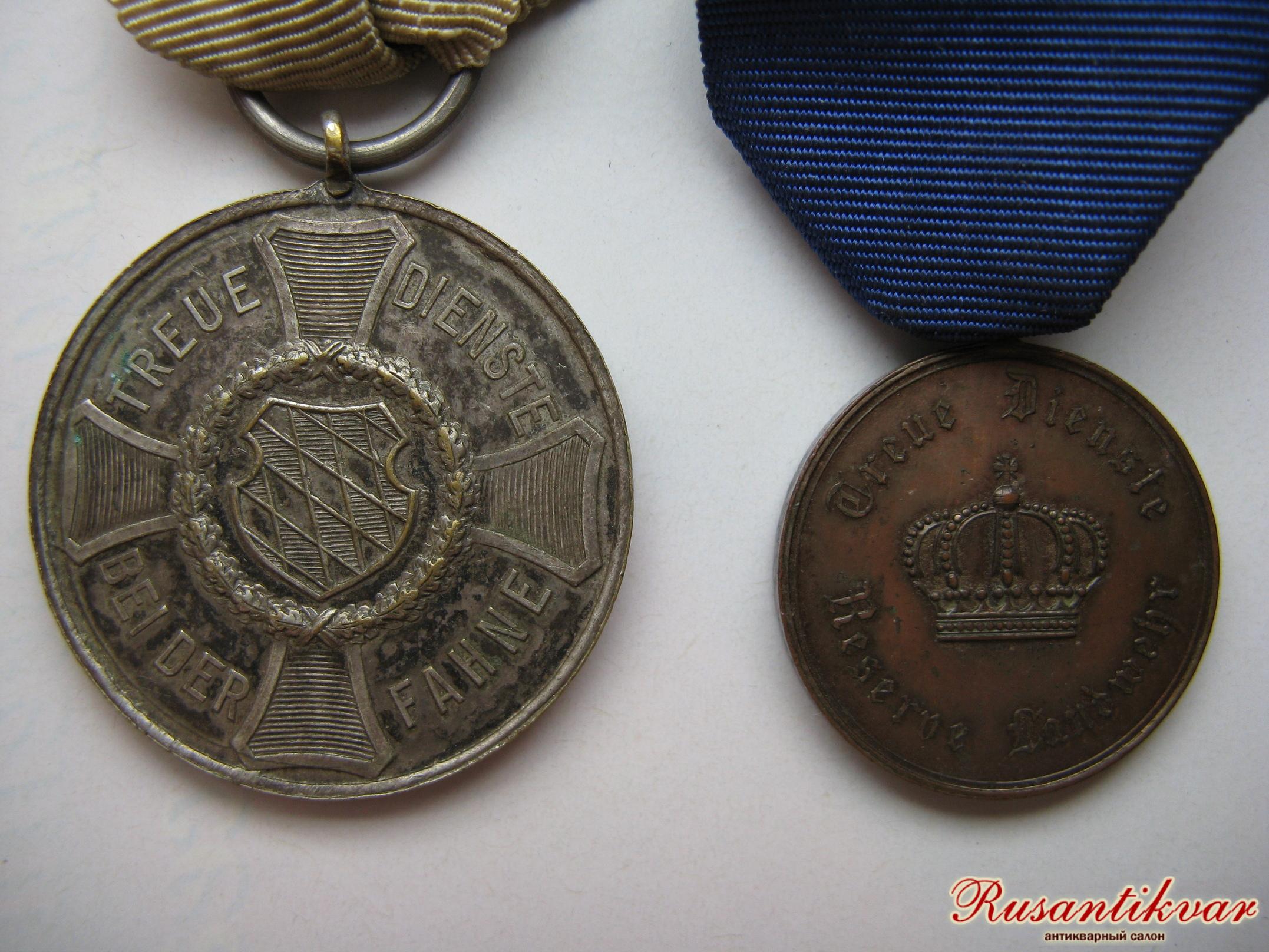 Слево - Медаль За выслугу 9 лет в АРМИИ . БАВАРИЯ . Справа - ПРУССИЯ.Медапь " ЗА ВЫСЛУГУ В ЛАНДВЕРЕ" II КЛАСС . Ленты- оригинал. ЦЕНА- 2 500 РУБЛЕЙ за штуку + почта.
