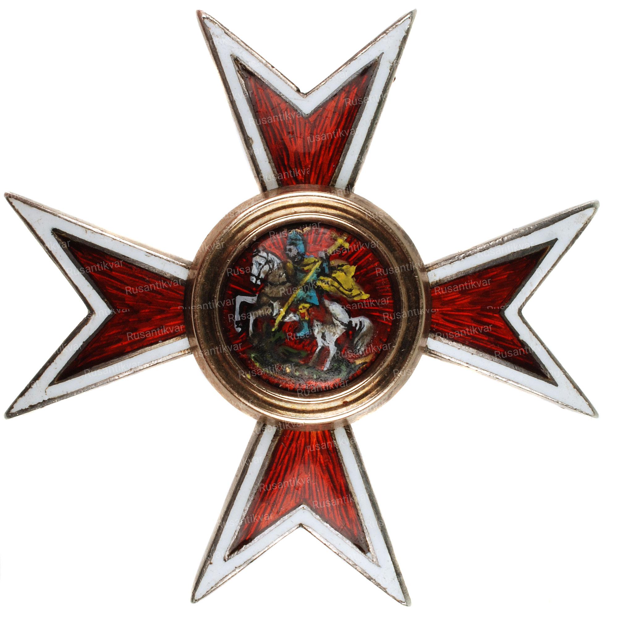 Утвержден 4 октября 1913 года. Мальтийский крест красной эмали с белым ободком. В середине его красный эмалевый кружок с золотым ободком, а на нём белая фигура св. Георгия Победоносца.