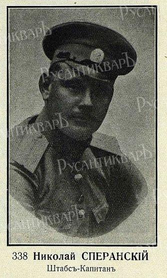 Кавалеры ордена Св.Георгия и Георгиевского оружия. Сперанский Николай Иванович (4 декабря 1882 — 13 февраля 1943) — полковник лейб-гвардии 3-го стрелкового полка, герой Первой мировой войны.