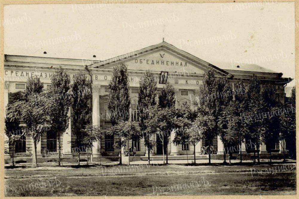 Ташкентское военное училище в советское время. В Ташкенте 1918 году в том же здании была создана Средне-Азиатская Военная школа им. Ленина где были организованы курсы красных командиров для подготовки младшего командного состава Красной армии.Уже в 1919 году эти курсы стали называться Объединенной имени товарища Ленина командная школа, а с 1937 года стали называться Ташкентское пехотное училище. В дальнейшем училище получило название Ташкентское высшее общевойсковое командное Краснознаменное ордена Красной Звезды училище имени В.И. Ленина (ТВОКУ им. Ленина) или, как его называли в просторечье — Ленинское училище.А наши дни там распологается Академия Вооружённых сил Усбекистана.