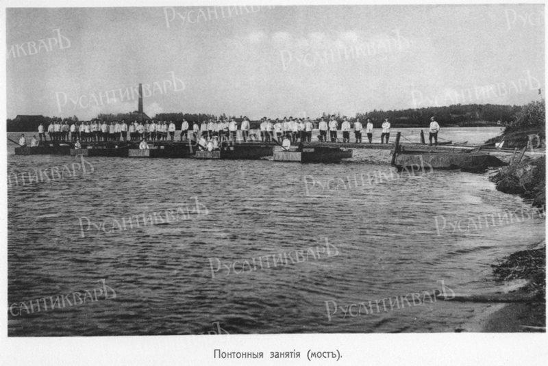 ВОЕННЫЕ УЧИЛИЩА. Курс ВОЕННЫХ СООБЩЕНИЙ читался в старших классах военных училищ. Здесь главным образом рассматривались вопросы строительства дорог, в т.ч. и железных, перевозки по ним личного состава. Воспитанники должны были знать способы определения скорости течения реки, ее ширины и глубины, характера дна. Большое место в учебных планах отводилось строительству различных переправ, в первую очередь из подручных материалов, для преодоления рвов, ручьев и мелководных нешироких рек. Естественно, будущие командиры получали сведения и о строительстве мостов на турах, козлах, на судах и плотах, о понтонных парках и наведении понтонных переправ; они также должны были знать методы разрушения мостов и простейшие способы их восстановления.