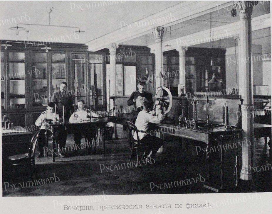 ВОЕННЫЕ УЧИЛИЩА. Что касается общеобразовательных предметов, программы которых подробно рассматривались выше применительно к юнкерским училищам, то в данном случае хотелось бы рассказать не столько о самих предметах, сколько о преподавателях некоторых из них и самой методике преподавания.Новым курсом, например, была МЕХАНИКА. Учитывая, что кадеты уже имели определенные знания по физике и химии, здесь рассматривались такие разделы, как понятие о движении, траектория точки, движение равномерное и переменное, движение твердого тела (поступательное, вращательное), равновесие сил. закон Ньтопа о земном тяготении, момент силы. Изучая те или иные физические явления, юнкера получали понятия и точно были ориентированы на то, зачем, для какой конкретно цели эти знания им будут нужны, где они их смогут применить. Как и по всем училищным курсам, преподаватели могли использовать различные учебники и учебные пособия, но в основном пользовались учебником полковника В.Беренса «Курс математики и механики» и «Кратким элементарным руководством для изучения теоретической механики» Я.Цветкова.
