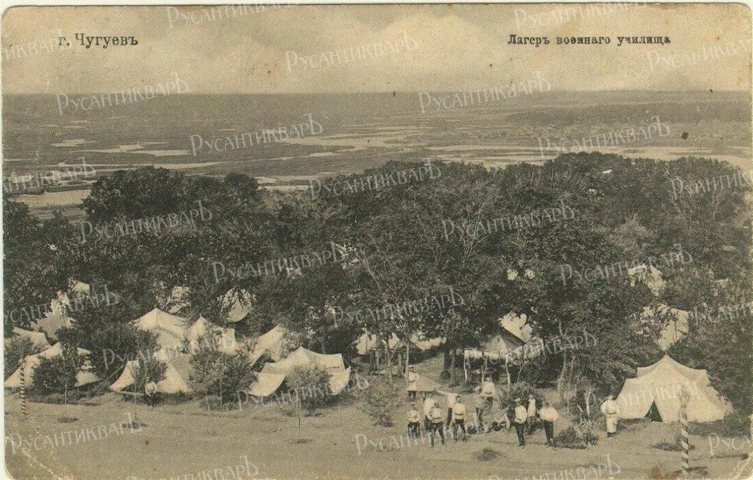 Расположение. Чугуевское пехотное юнкерское училище распологалось не в шумных и пыльных губернских городах, а в тихом, чистом месте — на круче над Северским Донцом, обжитой еще в седой древности, в городе Чугуев Харьковский военный округ (Харьковская губерния).